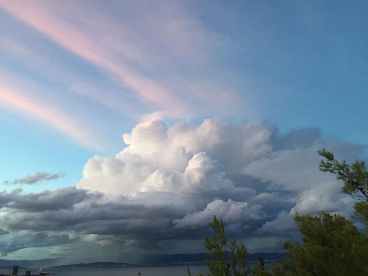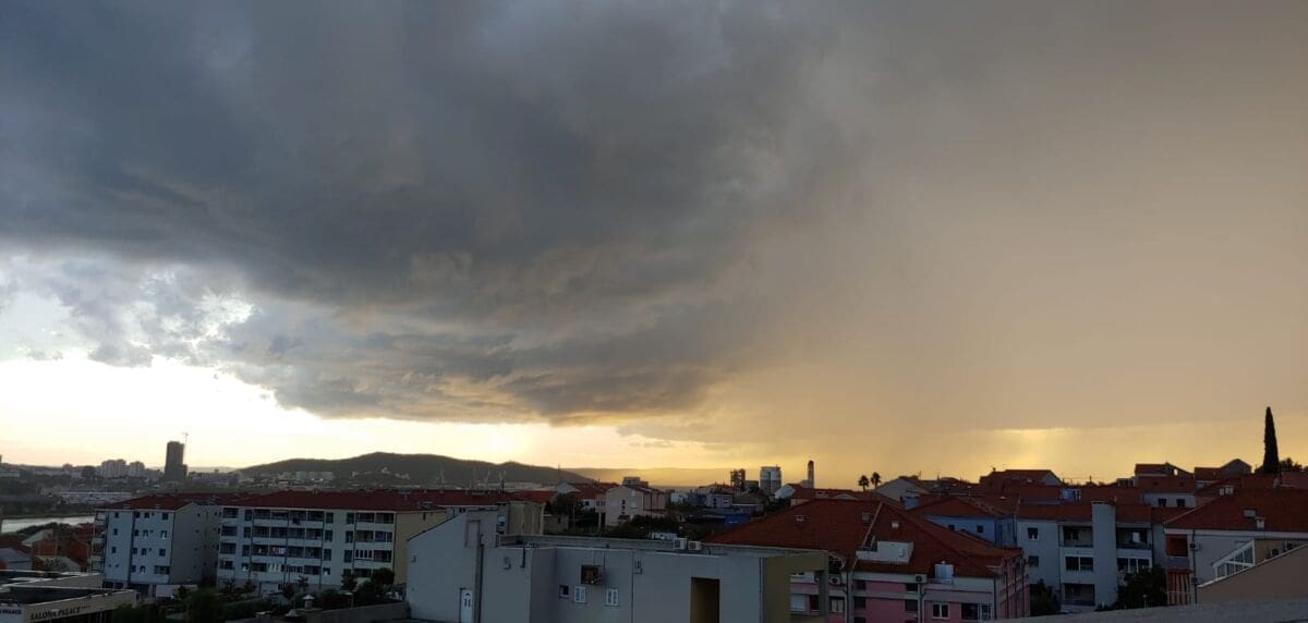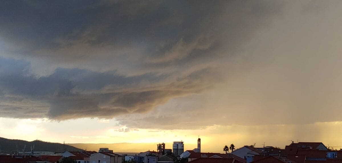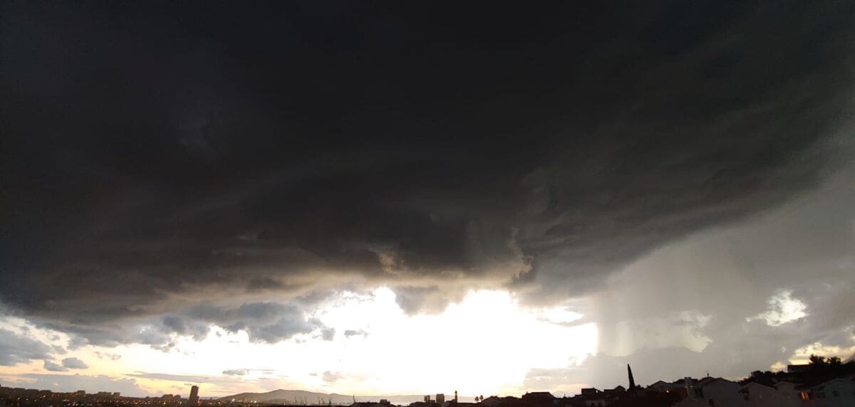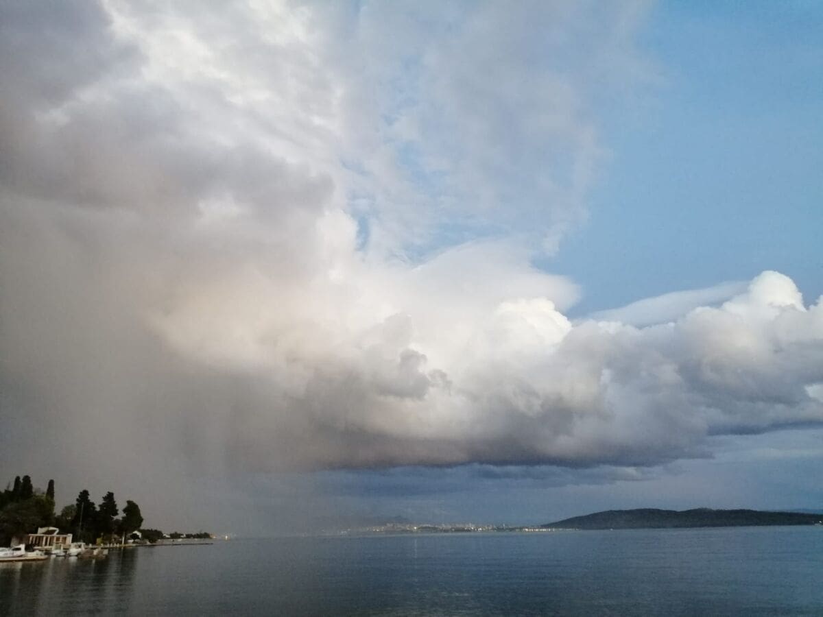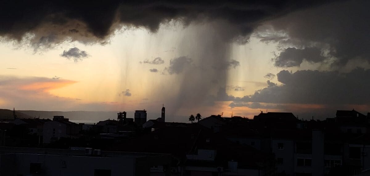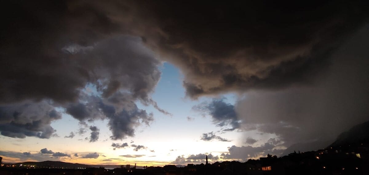 U kasnim popodnevnim satima grmljavinski oblak razvio se nad Kaštelanskim zaljevom, donoseći nove oborine dijelovima Kaštela, ali i Splita.