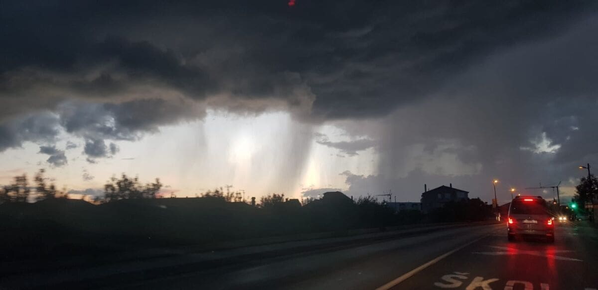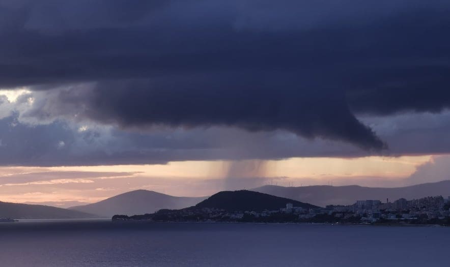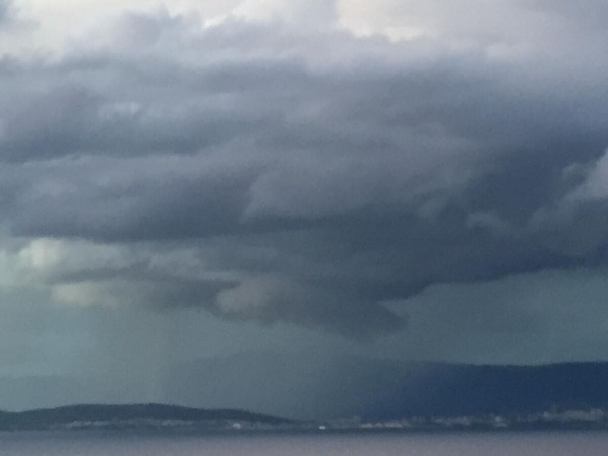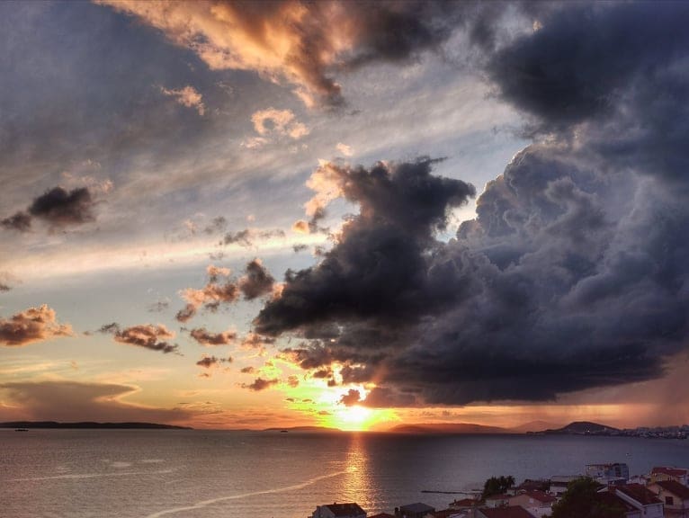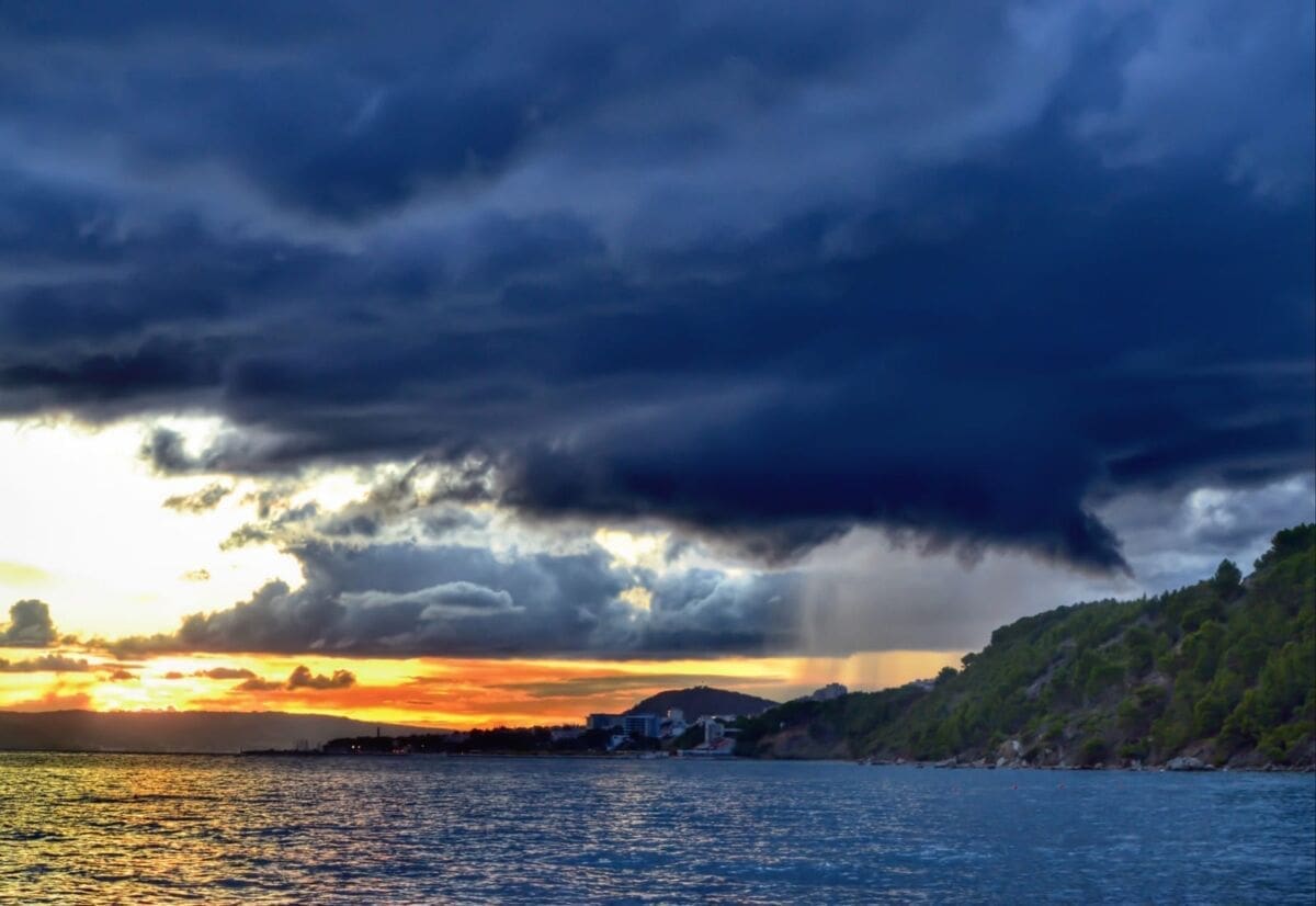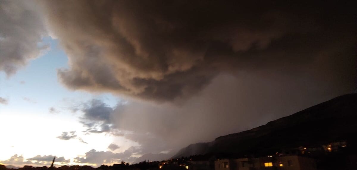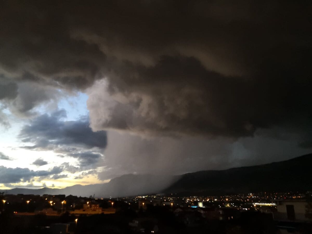 U kasnim popodnevnim satima grmljavinski oblak razvio se nad Kaštelanskim zaljevom, donoseći nove oborine dijelovima Kaštela, ali i Splita.
