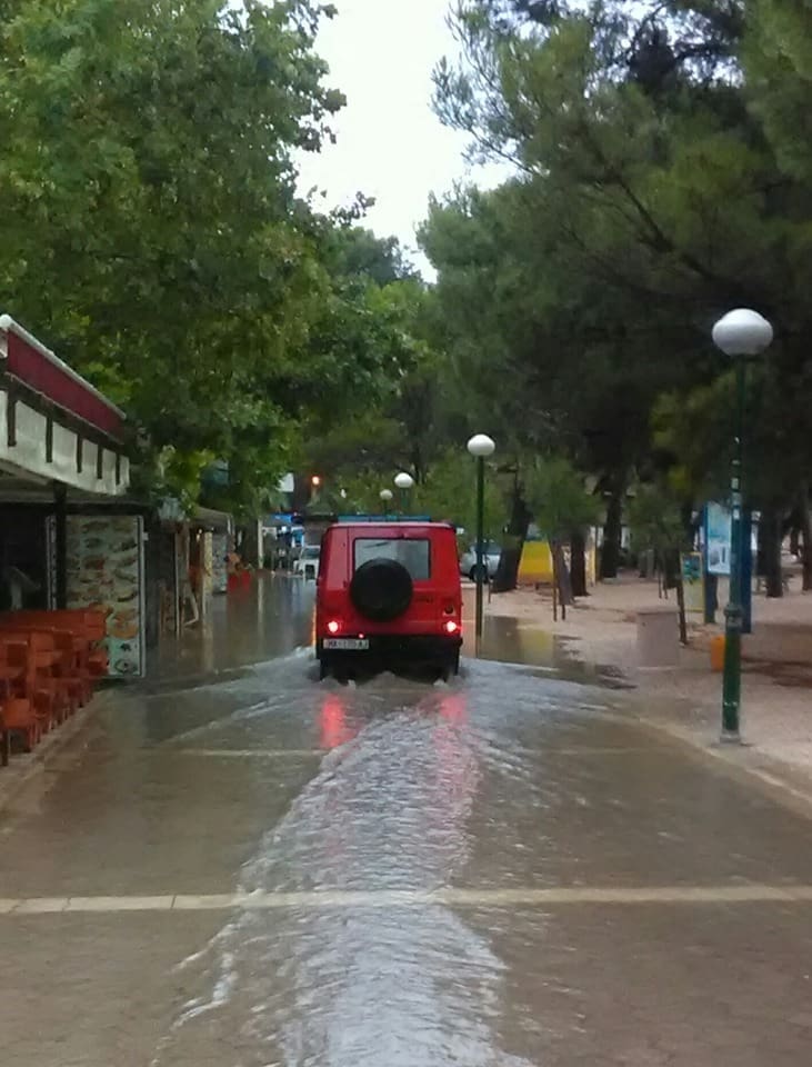 U ranojutarnjem nevremenu koje je zahvatilo Makarsku, u kratko vrijeme je palo čak 59 litara kiše po kvadratnom metru. Kako to obično biva kada u kratkom vremenu padne velika količina oborina, mnoge su se prometnice našle pod vodom.