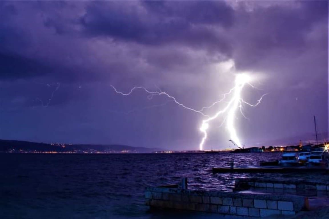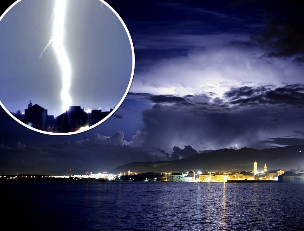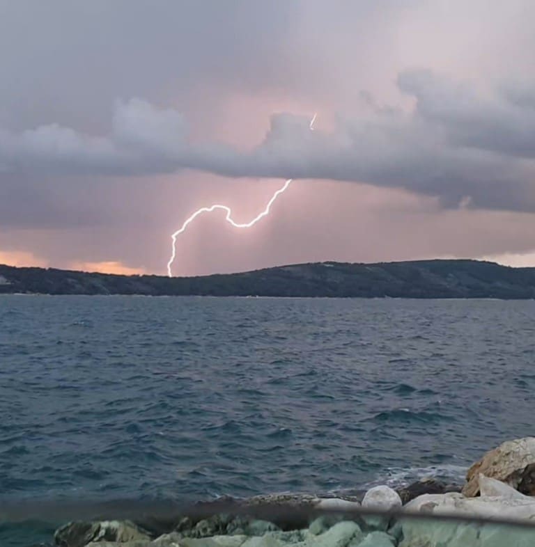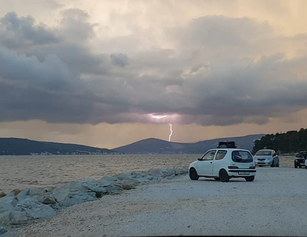 Novi sustav grmljavinskih oblaka razvio se nad morem srednje Dalmacije u četvrtak navečer. Olujni oblak primakao se rogozničkom području s mora, intenzivno sijevanje vidjelo se od Šibenika do Splita. Kako nam javljaju čitatelji, munja je udarila u jedan dalekovod u zaleđu Trogira.