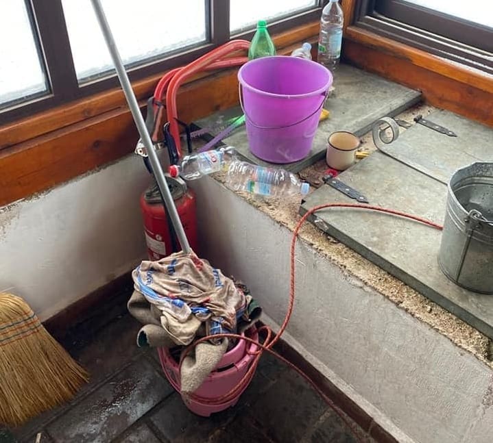 Evo malo slika u kakvom smo stanju danas zatekli sklonište! Nedavno smo ga ostavili kao apoteku, uostalom, kao i uvijek, a uvijek nas isto i dočeka! Sad više nema dileme hoćemo li naše kućice zaključavati, valjda je to jasno!