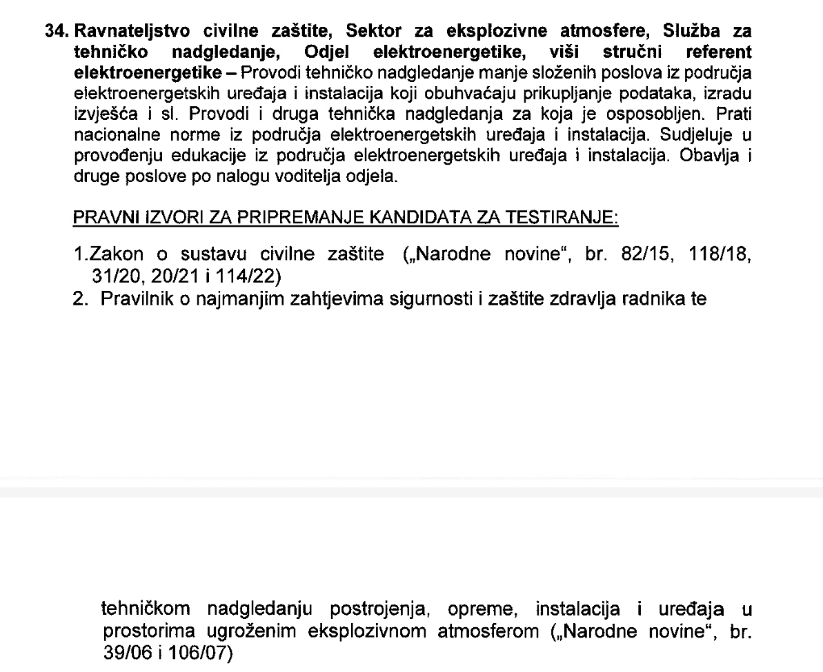 Volonterska je to funkcija, no, u svibnju MUP raspisuje natječaje za 67 radnih mjesta u Civilnoj zaštiti. Jedno od njih na koje se javlja Josip Granić i još dvoje, je radno mjesto na neodređeno vrijeme višeg stručnog referenta elektroenergetike u Odjelu elektroenergetike Službe za tehničko nadgledanje Sektora za eksplozivne atmosfere u Ravnateljstvu Civilne zaštite.