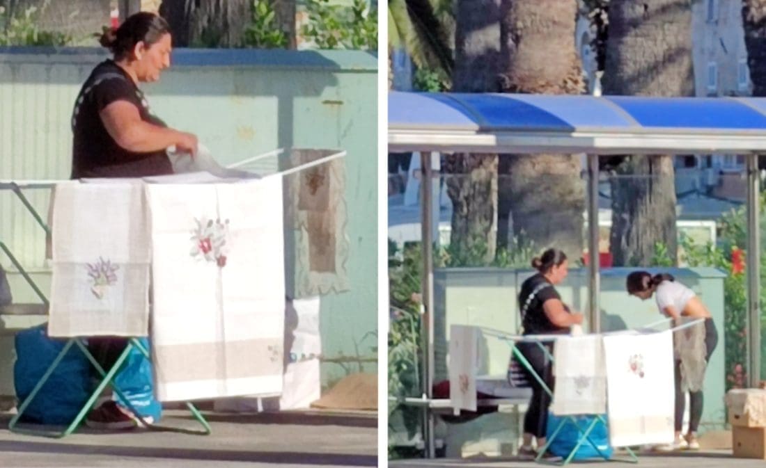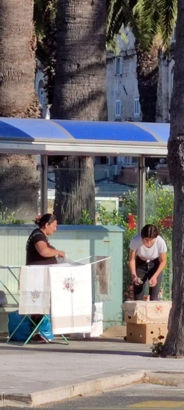 Jutros pak, "duh prošlosti" ukazao se pored autobusnog i taksi ugibališta, pri početku Rive. Naime, dvije žene su raširile sušilo koje ima je poslužilo kao improvizirani banak. Tamo su prodavale svoje "krpice", a prolaznici su bili u nevjerici.