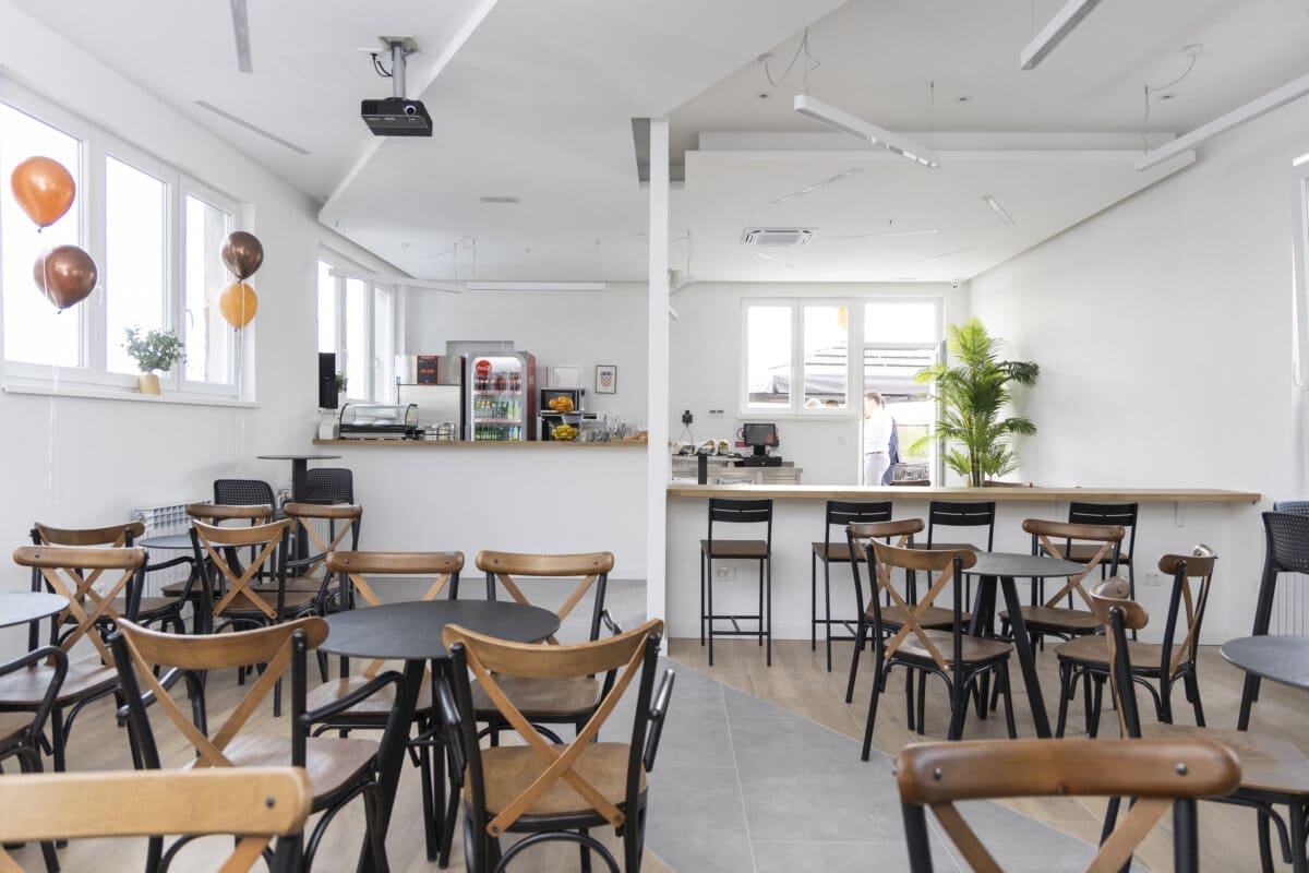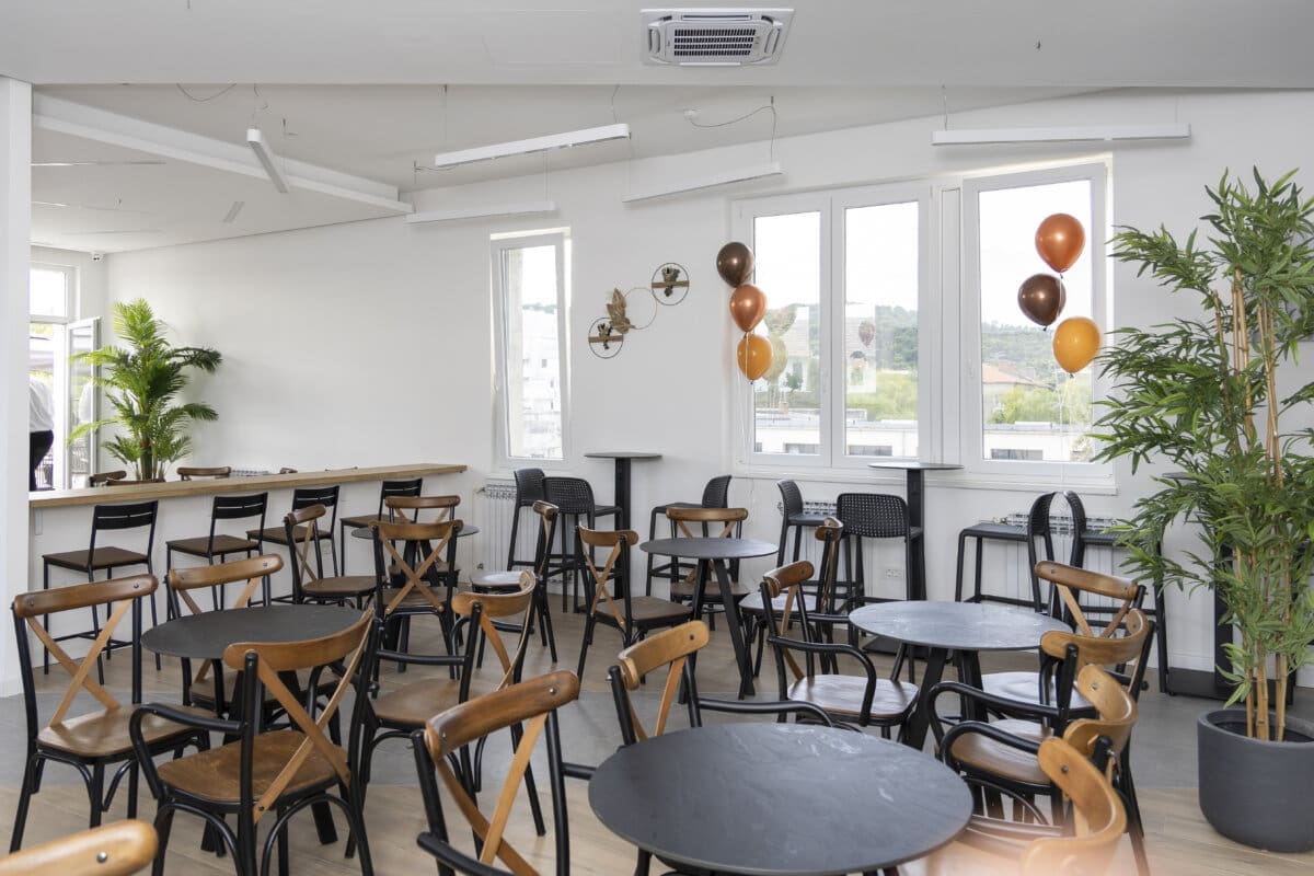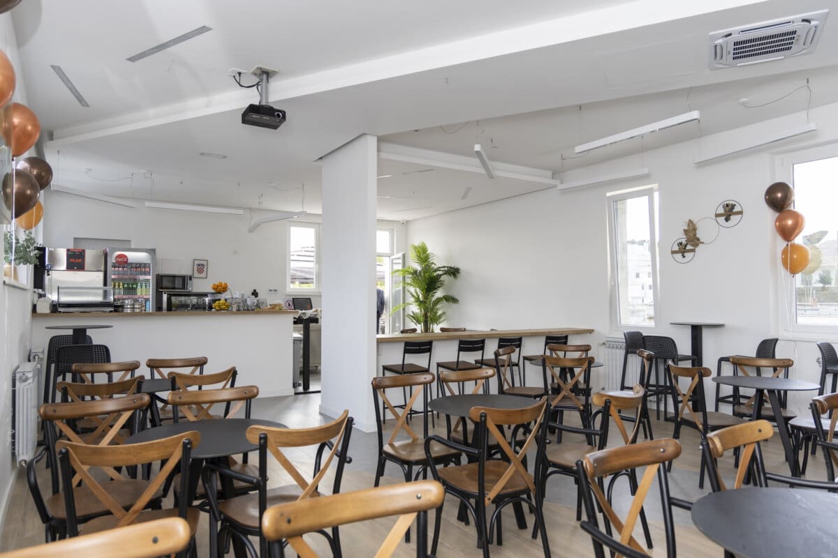 Studenti kineziologije svoj će obrok odsad moći potražiti u novouređenoj kantini jednostavne prehrane Studentskog centra u Splitu smještenoj na drugom katu njihove zgrade u Teslinoj 6. Kantina je veličine 90m² i modernog je uređenja uz 45 sjedećih mjesta. Studenti će uz iksicu moći konzumirati sokove, vodu, kavu, sendviče, kroasane i ostala peciva te hladne salate. Uz studente kineziologije u kantini se očekuu i studenti splitskog UMAS-a, te srednjoškolci i nastavno osoblje. Međutim, nemojmo zaboraviti kako kantina kao prostor u kojemu se služe jednostavna jela i pića ne predstavlja samo mjesto za konzumiranje obroka, već je njena uloga i društvena: to je mjesto susreta, razgovora, rasprava ali i smijeha i predaha od predavanja. Tu će veliku ulogu odigrati i vanjski dio kantine smješten ja 100m² velikoj terasi s koje pogled puca na zvonik svetog Duje. Sunčanih je dana u Splitu preko 300 pa nema sumnje da će se na terasi tražiti mjesto više za ispijanje klasične splitske kave.
