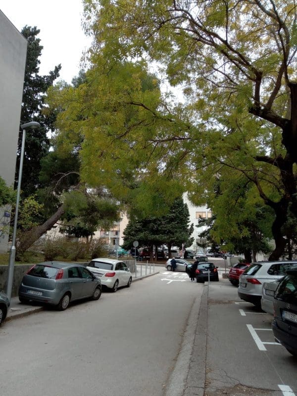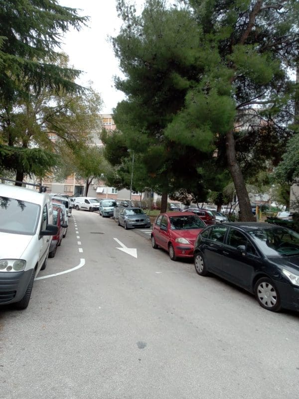 Kako bi se spriječilo parkiranje na kolniku pokraj tržnice, stupići su postavljeni po sredini ceste.