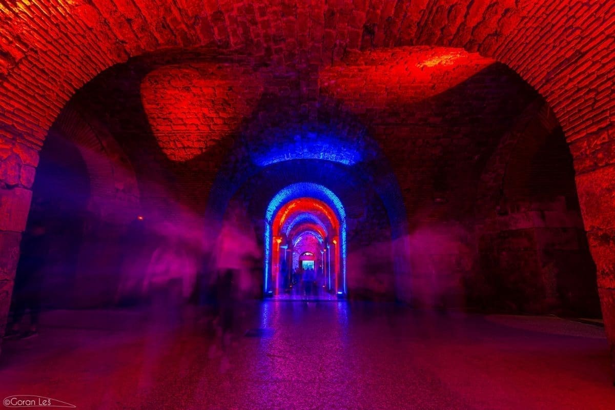 Kako su jučer izgledali "obojeni" Dioklecijanovi podrumi, pogledajte u fotogaleriji Eddyja Meštrovića i Gorana Leša.