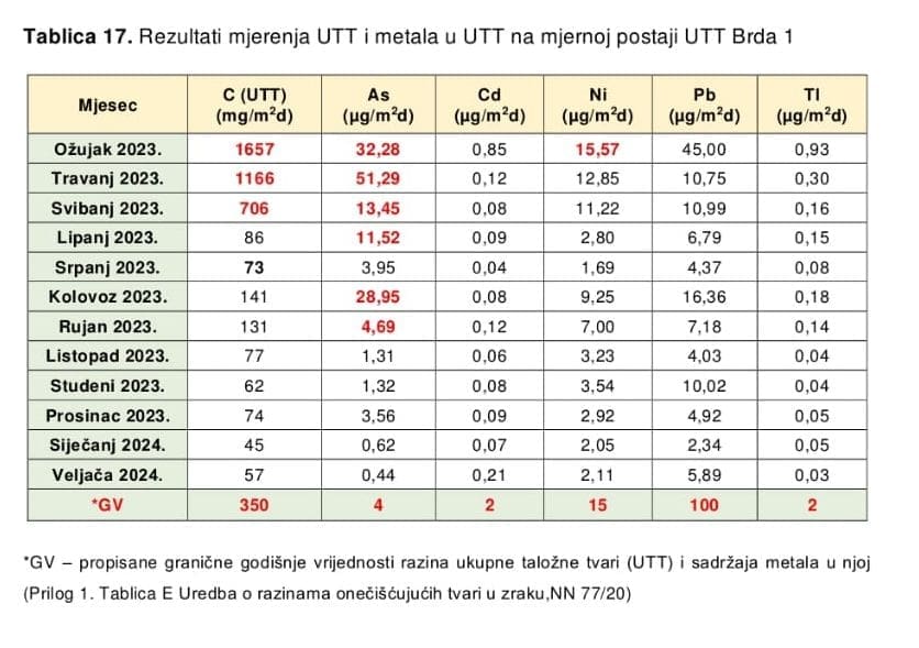 Posljednjih godinu i pol dana na mjernim stanicama na području Brda, sudeći po tisućama podataka iz tablica NZJZ-a, bilo je kriznih trenutaka i dana, prvenstveno kad je puhala bura. U tim danima vrijednosti Arsena recimo znale su biti iznad graničnih vrijednosti, kao i nekih drugih metala.