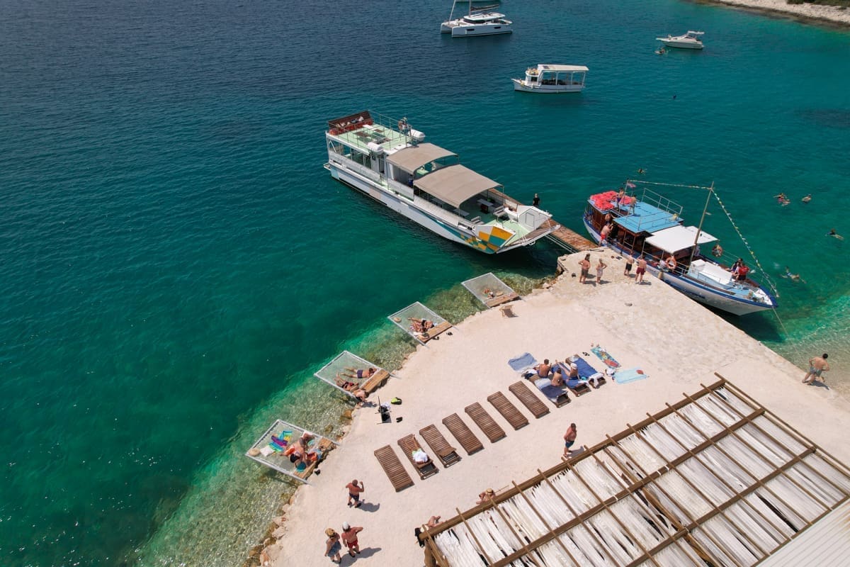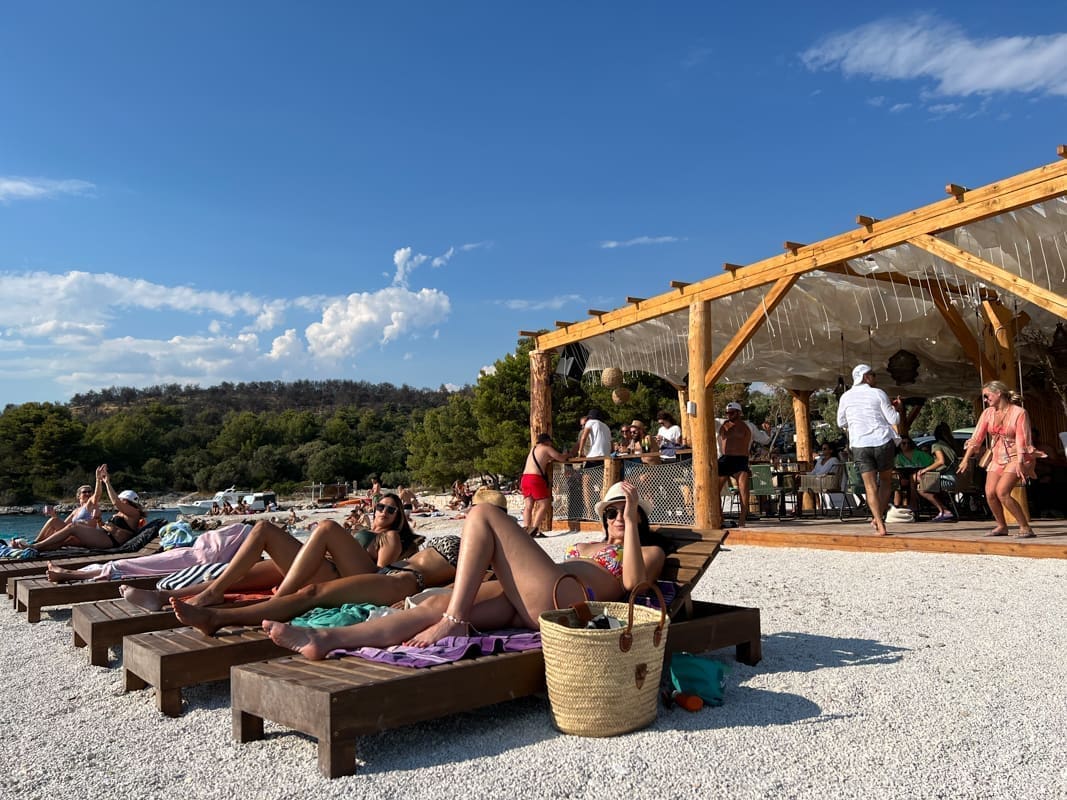 Ovaj beach bar istaknuo se svojom pozicijom, predivnim pogledom na obližnje otoke, ali i samim izgledom. Drvena konstrukcija i neobičan strop, sastavljen od povezanog platna koje se lagano njiše dok vjetar puše i pritom stvara hlad i ugodno osvježenje upravo je ono što beach bar Borkko čini jedinstvenim i privlačnim domaćima i strancima. Ove godine bar je obogaćen mrežama za ležanje, smještenim odmah povrh kristalno čistog mora, detaljem koji posebno oduševljava goste.