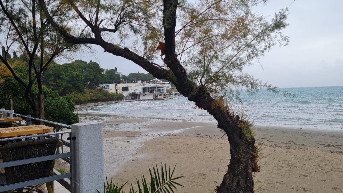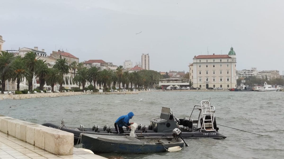 Snažna sredozemna ciklona drugi dan zaredom intenzivno utječe na vrijeme na Jadranu. Ciklona donosi mjestimične obilne oborine, ali i snažan vjetar. Dok je jučer i noćas puhalo jako jugo s olujnim udarima, vjetar je jutros okrenuo na oštro, zatim i lebić (garbin).