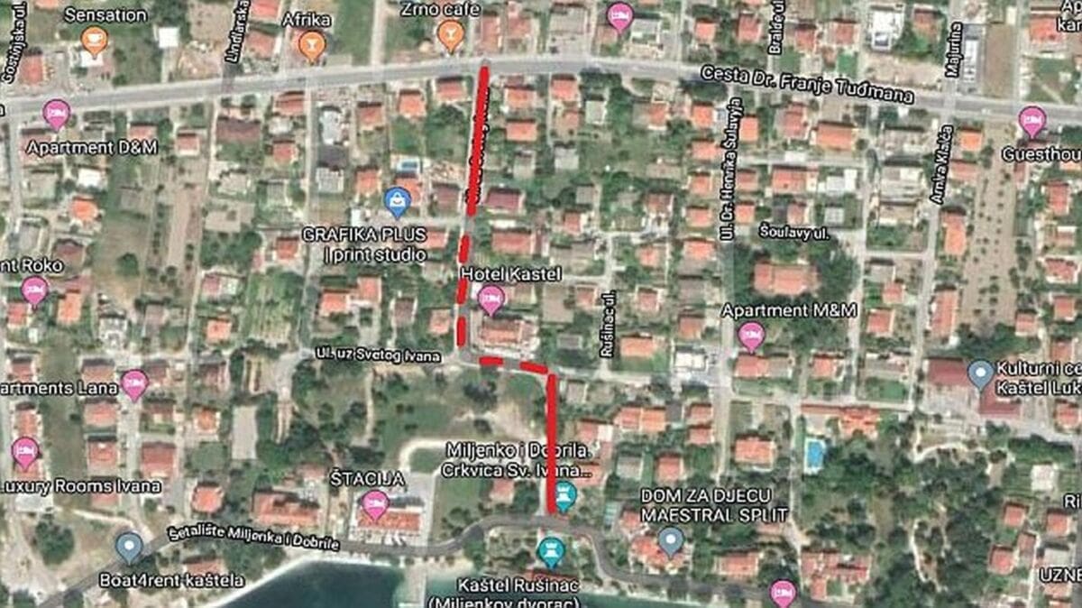 Privremenom regulacijom će se regulirati promet sjeverno od križanja Ulice uz Sv. Ivana i Šetališta Miljenka i Dobrile u dužini od 80 m (križanje ispod hotela Kastel) i sjeverno u Ulici uz Sv. Ivana od kućnog broja 2 do spoja na Cestu Dr. Franje Tuđmana, javlja portal grada Kaštela.