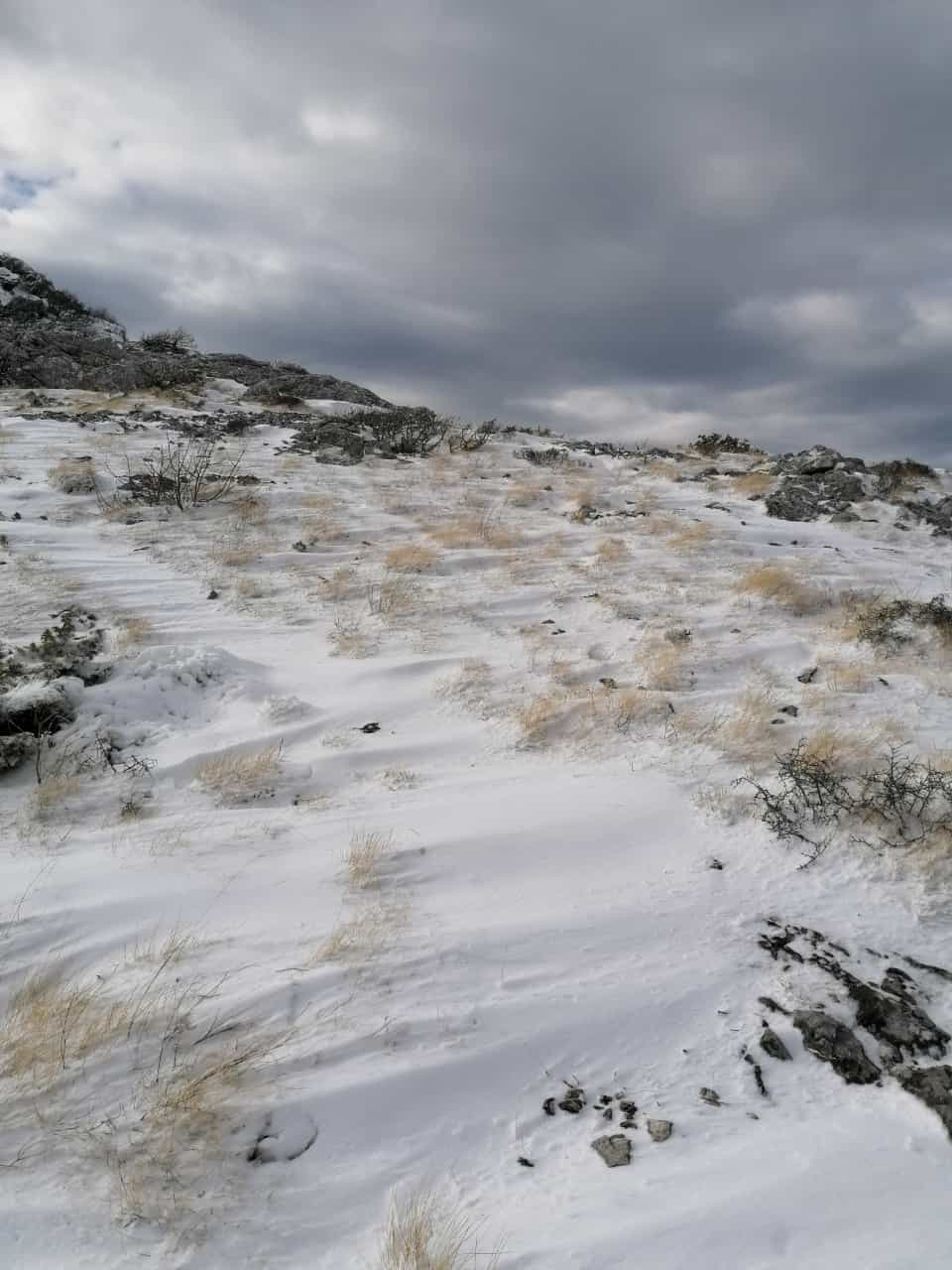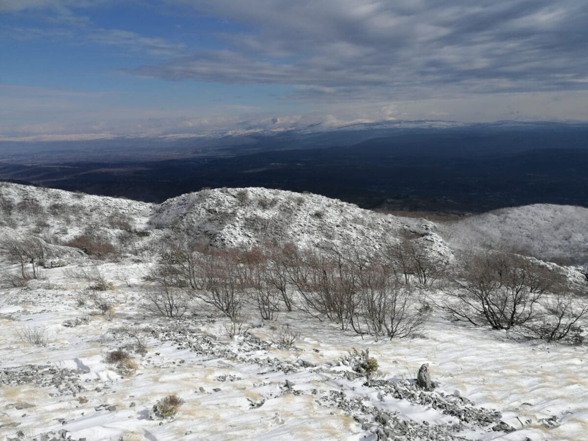 Snijeg je zabijelio Mosor iznad 1000 metara nadmorske visine, a snježnih pahulja rano jutros bilo je sve do Gornjeg Sitnog. U višim predjelima planine, doznajemo, palo je 6 centimetara snijega.