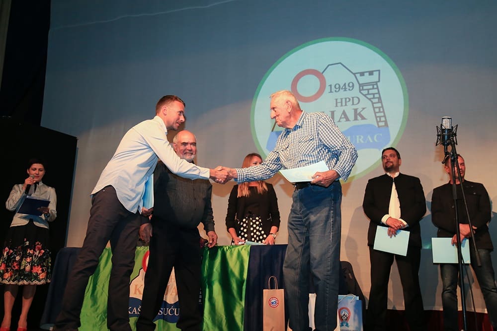 Svečanost je svojom pjesmom uveličala i kaštelanska klapa Podvorje, nakon čega je uslijedila dodjela priznanja i zahvalnica zaslužnim članovima, suradnicima i donatorima Društva. Posmrtno je uručena i zahvalnica pokojnom Dragi Grubaču za doprinos u radu Društva i razvoju planinarstva, koju je preuzela njegova supruga.