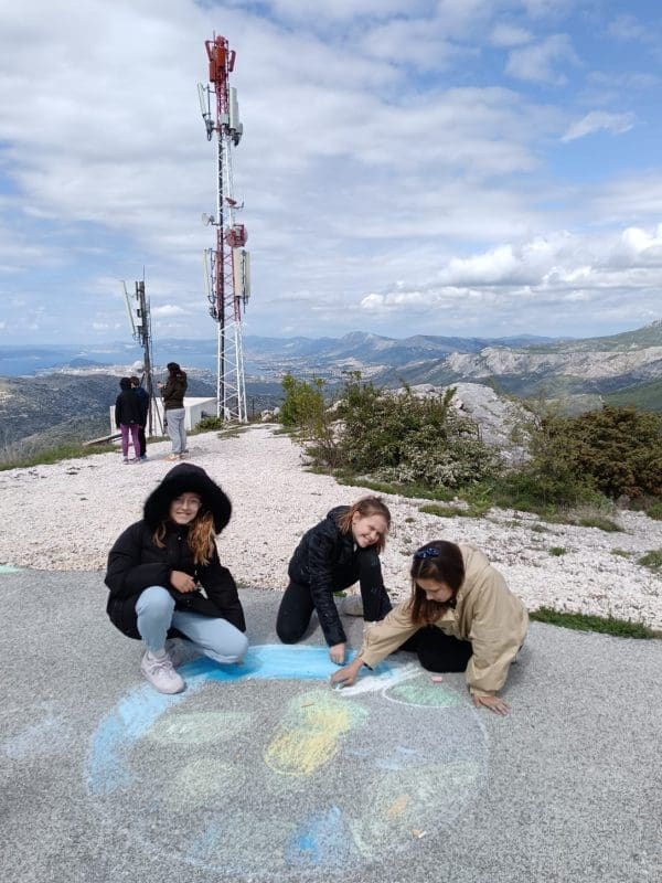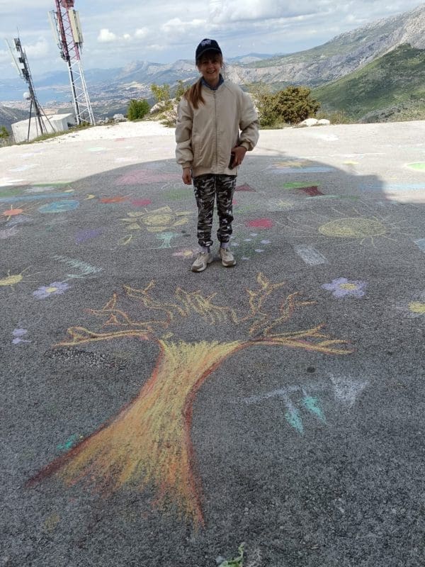 Nakon što su kredama u boji motivima proljeća oslikala asfalt pred ulazom u zvjezdarnicu, djeca su dobila priliku i poslušati predavanje dipl. inž. šumarstva UŠP Split Damjan Metličića, s temom "Sadnja drveća".