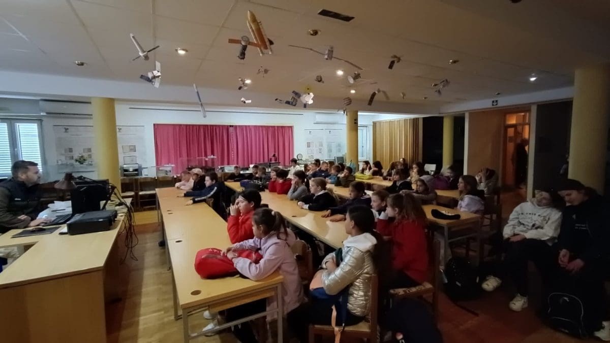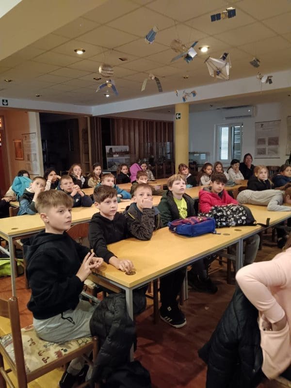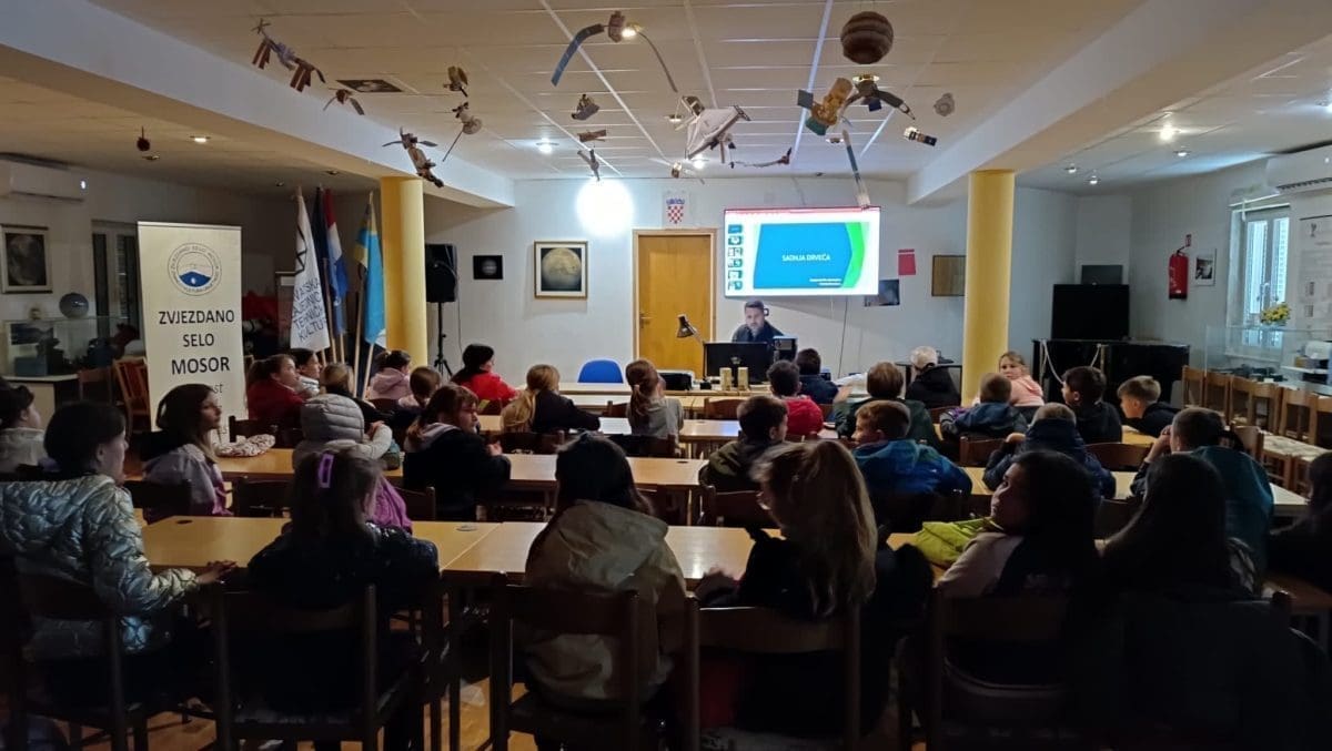 U velikoj dvorani zvjezdarnice, upriličeno je i za program "Škole u prirodi" uobičajeno, predavanje pod nazivom "Sunčev sustav". Njega je održao astronom-animator Zvjezdanog sela Mosor Zoran Knez, a učenici su pokazali znatno zanimanje za tu svemirsku temu.