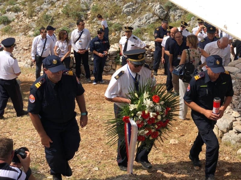 Zajednički vijenac u ime Predsjednice RH, Predsjednika Hrvatskog sabora i Predsjednika Vlade RH položili su njihovi izaslanici: župan Goran Pauk, saborska zastupnica Branka Juričev Martinčev i Predstojnik Ureda predsjednika Vlade Zvonimir Frka-Petešić, a u ime Šibensko-kninske županije vijenac su položili zamjenici župana Darija Puljić i Nikola Blažević. Vijenac je položilo i izaslanstvo Državne uprave za zaštitu i spašavanje na čelu s ravnateljem Draganom Lozančićem te izaslanstva gradova Šibenika i Vodica, općina Tisno i Murter-Kornati te Hrvatske vatrogasne zajednice i Vatrogasne zajednice Šibensko-kninske županije.