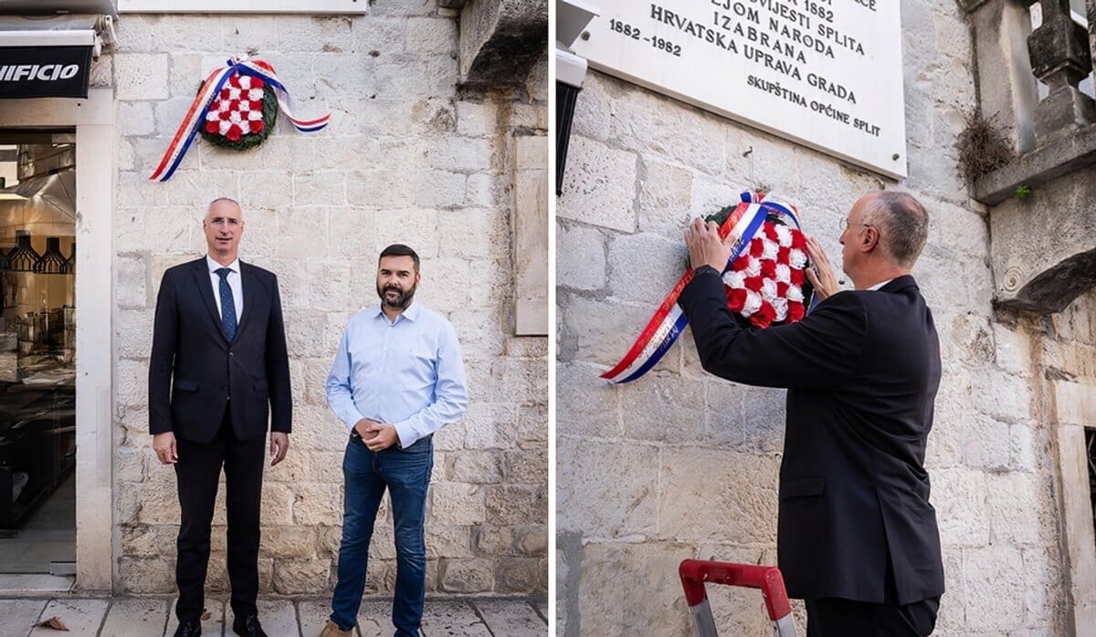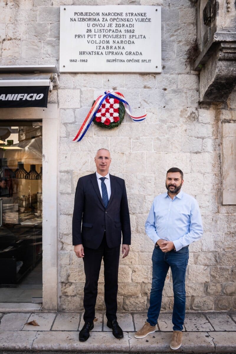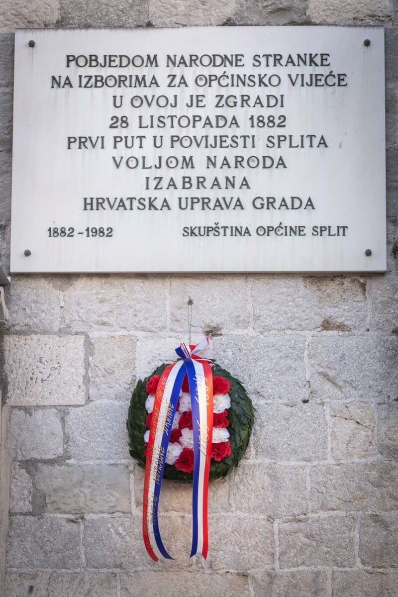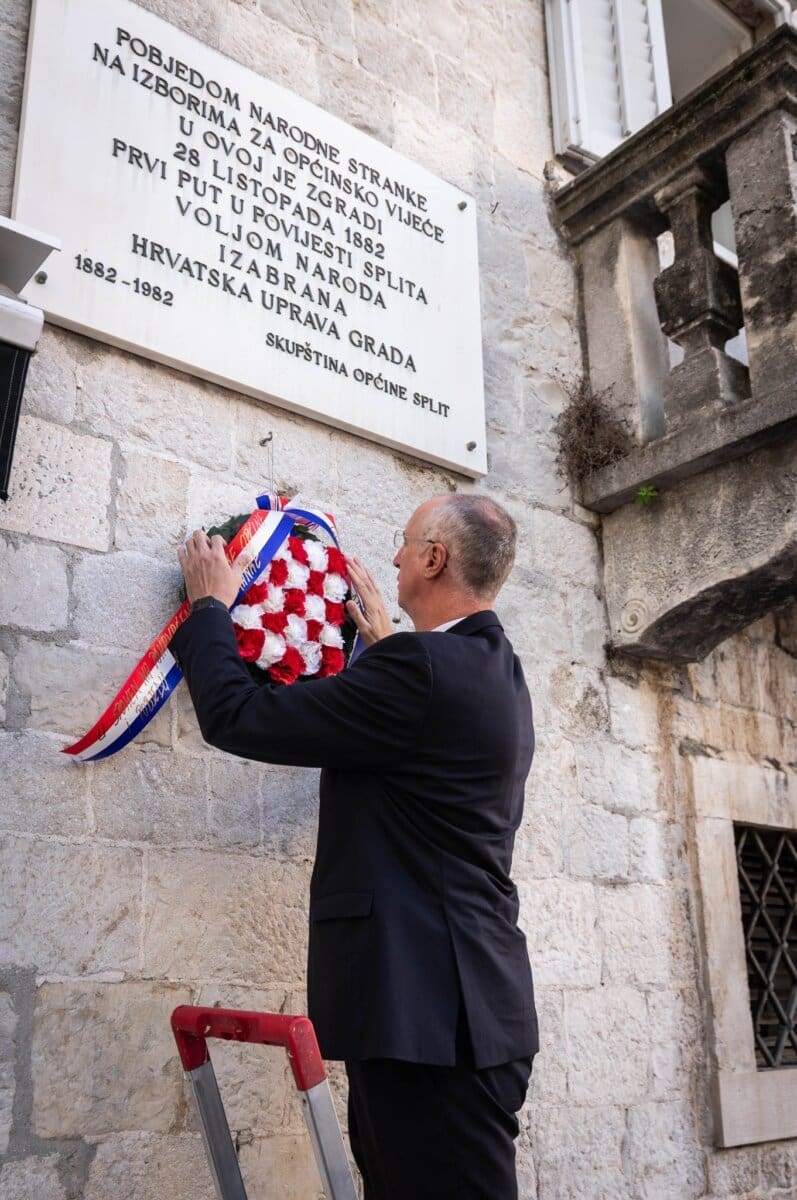Gradonačelnik Grada Splita Ivica Puljak danas je u povodu 142. obljetnice pohrvaćenja splitske Općine i povijesne pobjede Narodne stranke na izborima za Općinsko vijeće postavio vijenac na Spomen-ploču na kući Pavlović.