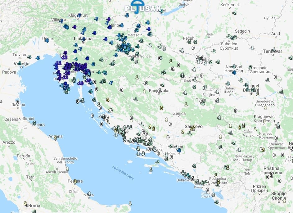 Najviše je zahladilo u područjima u kojima je pala kiša. U dijelu Istre zahladilo je čak 15 stupnjeva u odnosu na jučerašnje vrijednosti temperature zraka u isto vrijeme. Platak iznad Rijeke u 11 sati mjeri svega 12 stupnjeva.