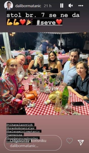 Fotografije s društvenih mreža otkrile su da je među gostima bila i Severina, ali i da joj je pratnja bila njezina dobra prijateljica i splitska fotografkinja Sonja Dvornik s kojom se često druži. Otkrile su to fotografije poznatog redatelja Dalibora Matanića koji ih je objavio na svom profilu na Instagramu, a uz njih bile su tu i njegova supruga Helena Minić, te glumac Goran Bogdan s djevojkom Jovanom Stojiljković, piše Dnevnik.hr.