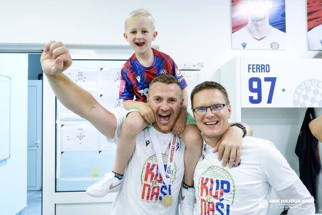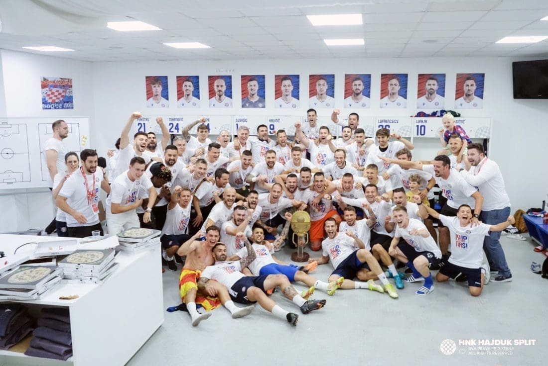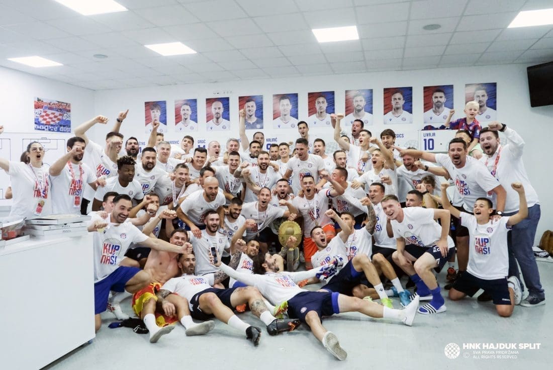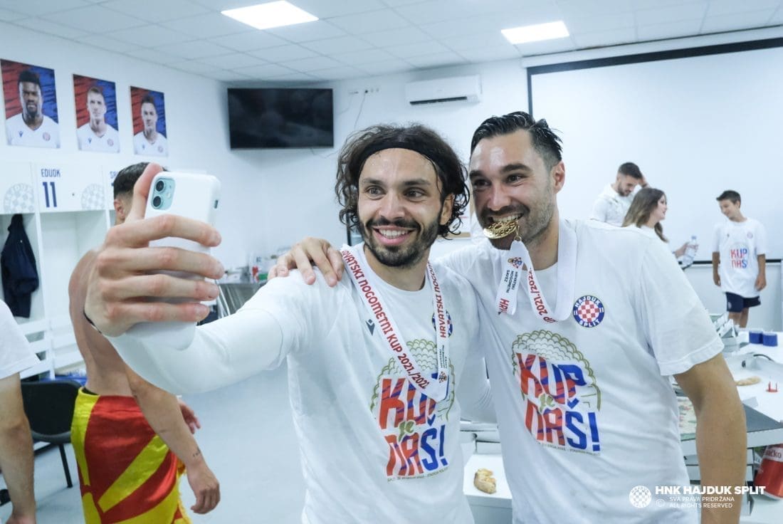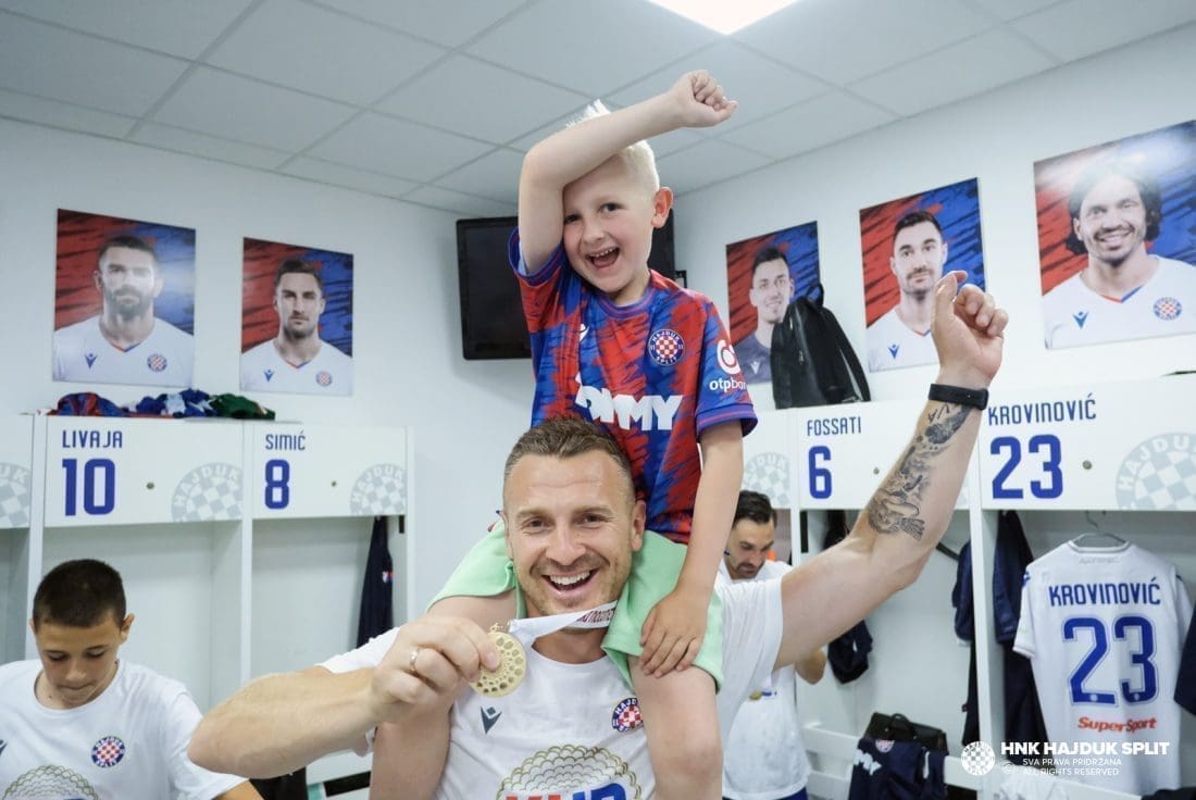 Objavljene su fotografije velikog slavlja sinoć u svlačionici na Poljudu. Pojedinci su došli s djecom i suprugama...