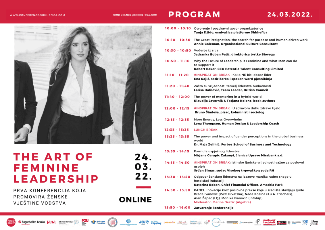 Prva konferencija u regiji koja promovira ženske vještine vodstva, The Art of Feminine Leadership, u svom četvrtom izdanju, okupit će vodeće međunarodne i domaće lidere koji će u šest sati inspirativnog programa govoriti o izazovima liderstva u hibridnom načinu rada, ali i rješenjima koje za njih pružaju ženske vještine vodstva.