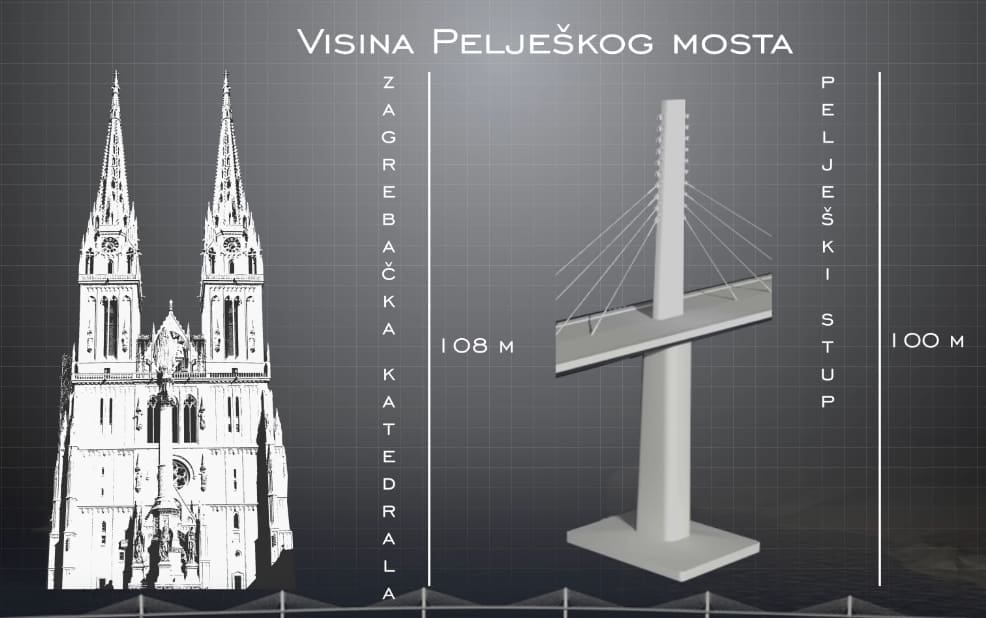 Hrvatske ceste, među ostalim, u filmu ističu da će najviša visina mosta iznad mora biti 100 metara, što je tek nešto niže od Zagrebačke katedrale, a da će se za izgradnju mosta utrošiti 33.700 tona čelika. Za ilustraciju se navodi da je za izgradnju Eiffelova tornja u Parizu trebalo 7300 tona čelika.