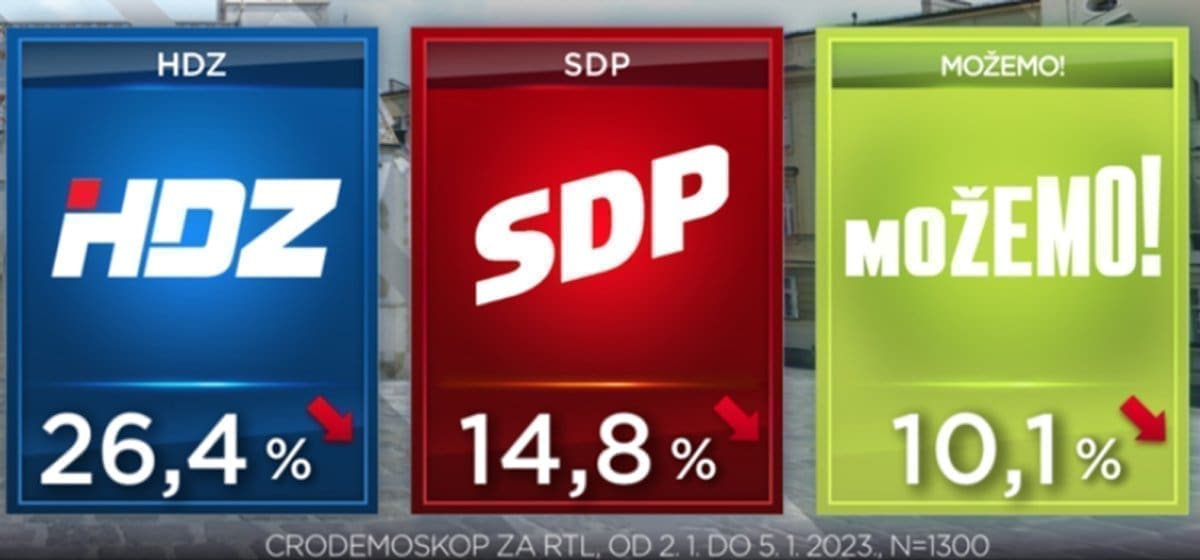 Iako je HDZ i dalje zadržao veliku prednost pred političkom konkurencijom i njega bira više od četvrtine birača (26,4 posto), nakon dva mjeseca rasta (studeni 24,7 posto - prosinac 26,9 posto) sada pada za pola postotna boda.