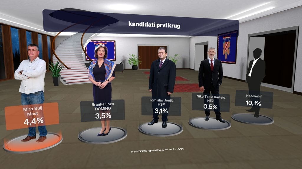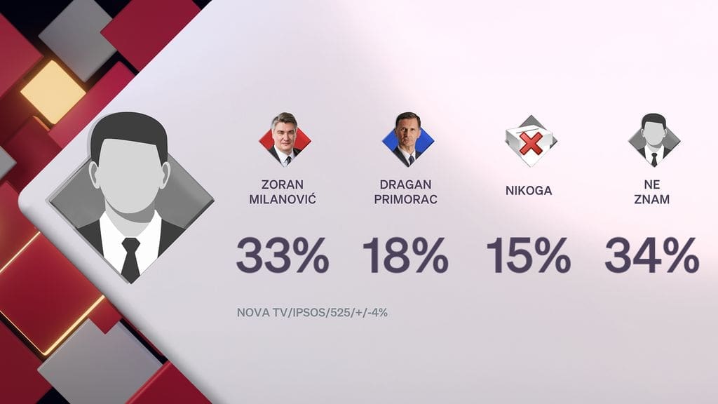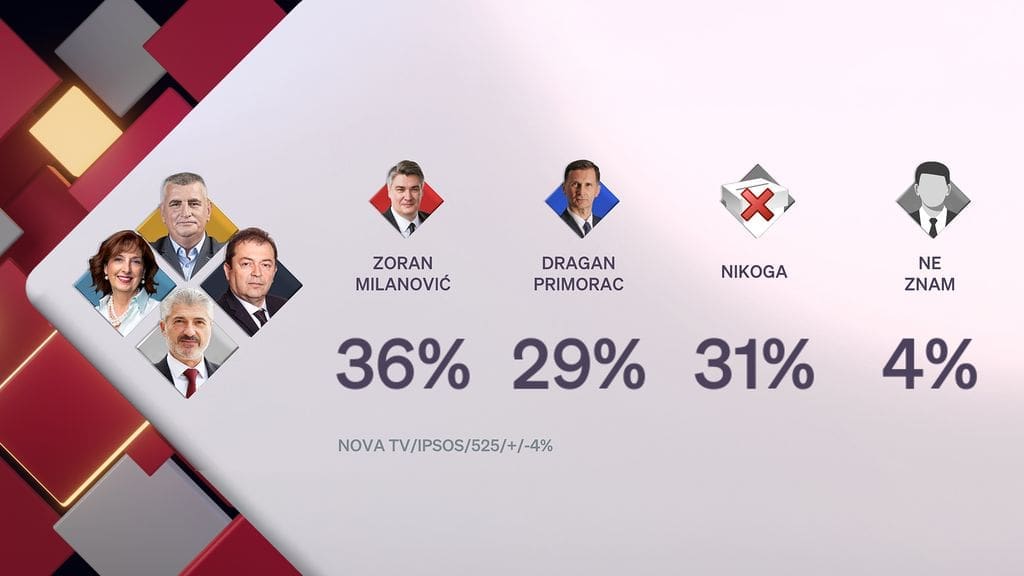 Da se danas održavaju predsjednički izbori, za aktualnog predsjednika Zorana Milanovića u prvom bi krugu glasalo 37.2 posto ispitanika koji kažu da planiraju izaći na birališta u nedjelju, 29. prosinca. Za HDZ-ovog kandidata Dragana Primorca glas bi dalo 20.4 posto ispitanih. Marija Selak Raspudić i Ivana Kekin vrte se oko 10 posto podrške, u ovom trenutku blagu prednost ipak ima Marija Selak Raspudić.