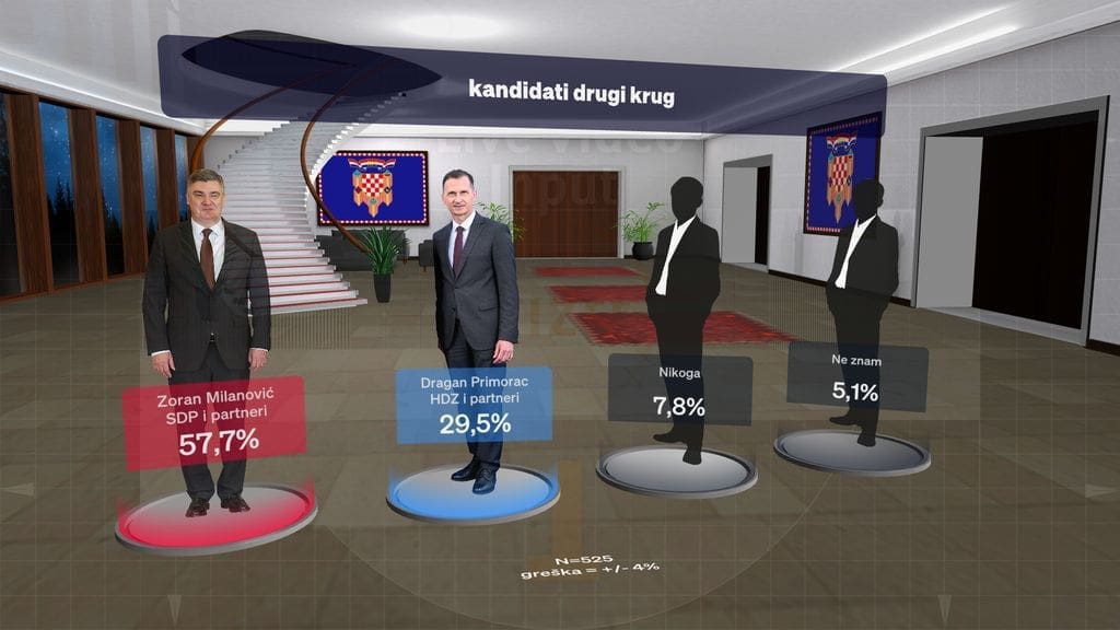 Prezentirani rezultati za Zorana Milanovića stoje jako dobro, za Dragana Primorca - baš i ne. Milanović je 2019. godine u prvom krugu bio malo ispod 30 posto, Kolinda Grabar Kitarović na oko 26 posto - bitno bolje od Dragana Primorca, kojem anketa predviđa oko 20 posto podrške. Kolinda Grabar Kitarović je pritom u utrku ušla iz pozicije predsjednice, ali valja podsjetiti da je imala i ozbiljnog izazivača na desnici, Miroslava Škoru, koji je osvojio oko 25 posto glasova, dok Primorac ipak nema tako ozbiljnih izazivača na desnici.