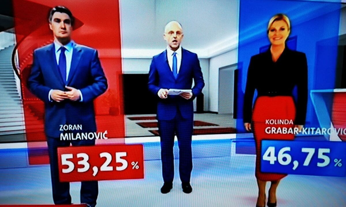 U nedjelju 5. siječnja 2020. održan je drugi krug predsjedničkih izbora. Prema prvim izlaznim anketama Zoran Milanović osvaja 53,25% glasova, a Kolinda Grabar-Kitarović 46,75% glasova. Izlazne ankete ne uključuju glasove dijaspore. Statistička pogreška je 1,31 posto.