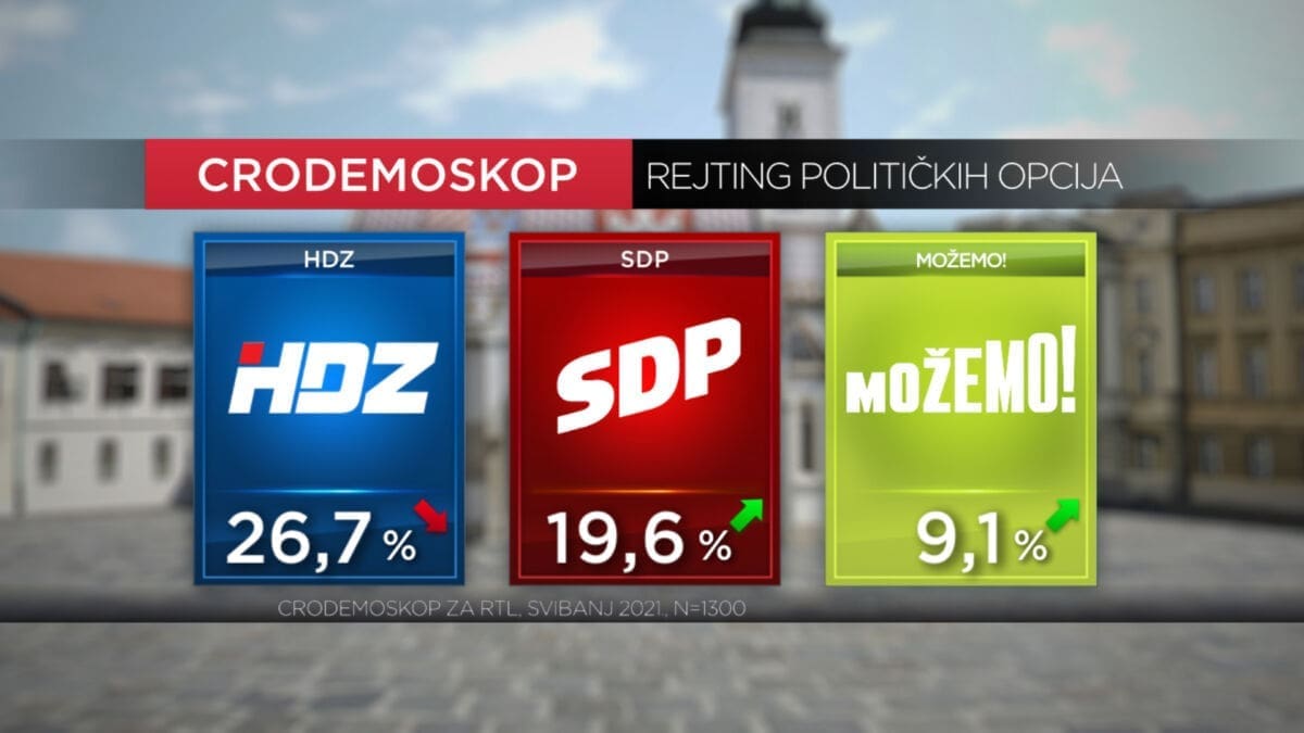 RTL je objavio rezultate CRO Demoskopa, ankete o rejtingu stranaka i političara.