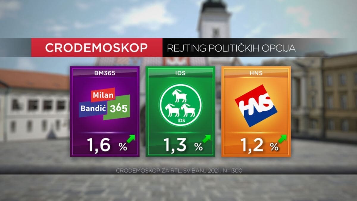 Svi ostali daleko su ispod toga. HSS ima manje od 2 posto (1.6 posto), a isti rejting ima stranka preminulog gradonačelnika Bandića. Slijedi IDS (1.3 posto), pa HNS (1.2 posto)...