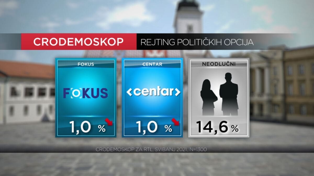 I FOKUS i CENTAR su na tek 1 posto (prije mjesec obje stranke su bile na 1.3 posto podrške), svi ostali su ispod toga, a neodlučnih je nezanemarivih 14.6 posto.