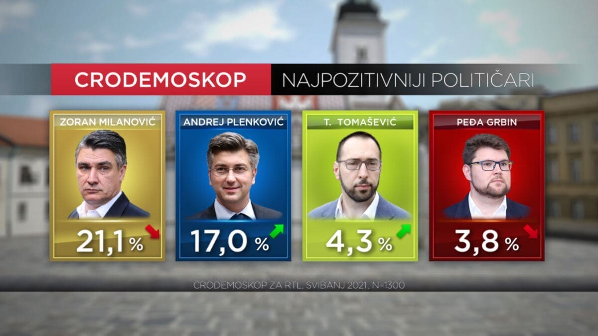 Tek nakon njega je Peđa Grbin (3.8 posto) kojemu je rejting u mjesec dana pao, u travnju je to bilo 4.1 posto.