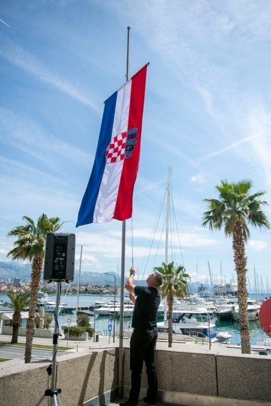 Svečanost je započela podizanjem hrvatske zastave i intoniranjem naše himne "Lijepa naša". Poseban trenutak bio je kada je pričuvni časnik Hrvatske vojske, Ivica Balić, koji je prije 33 godine zamijenio jugoslavensku zastavu hrvatskom, ponovno izvršio tu časnu dužnost.