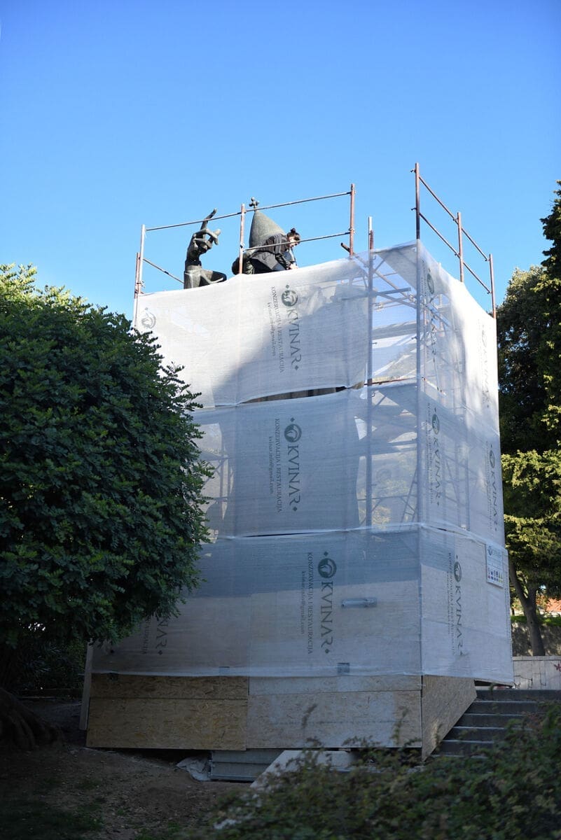 Tako će se nakon nešto više od pet godina, koliko je prošlo od posljednje detaljne obnove skulpture, čistiti vanjska površina i kameni postament, skidati slojevi dotrajalog voska te korozivne naslage i ostala onečišćenja, obnoviti na mjestima oštećena patina, zaštiti od korozije te konačno navoštiti i polirati. Izvođač radova čija je ugovorena vrijednost 55. 625,00 kuna je tvrtka Kvinar d.o.o.