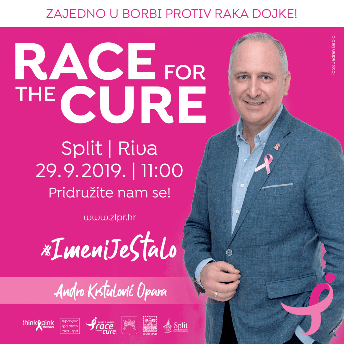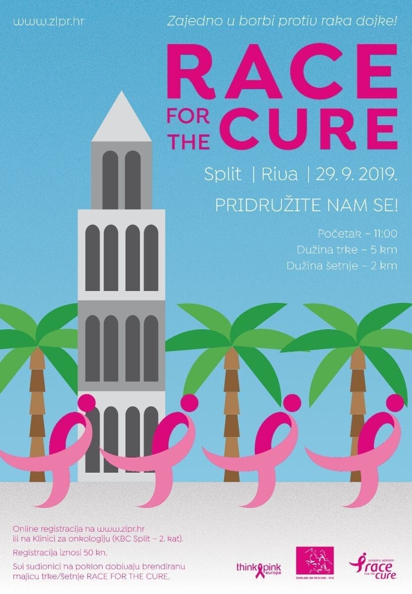 Sama trka/šetnja Race for the cure održat će se 29. rujna 2019. sa startom u 11 sati na splitskoj Rivi.
