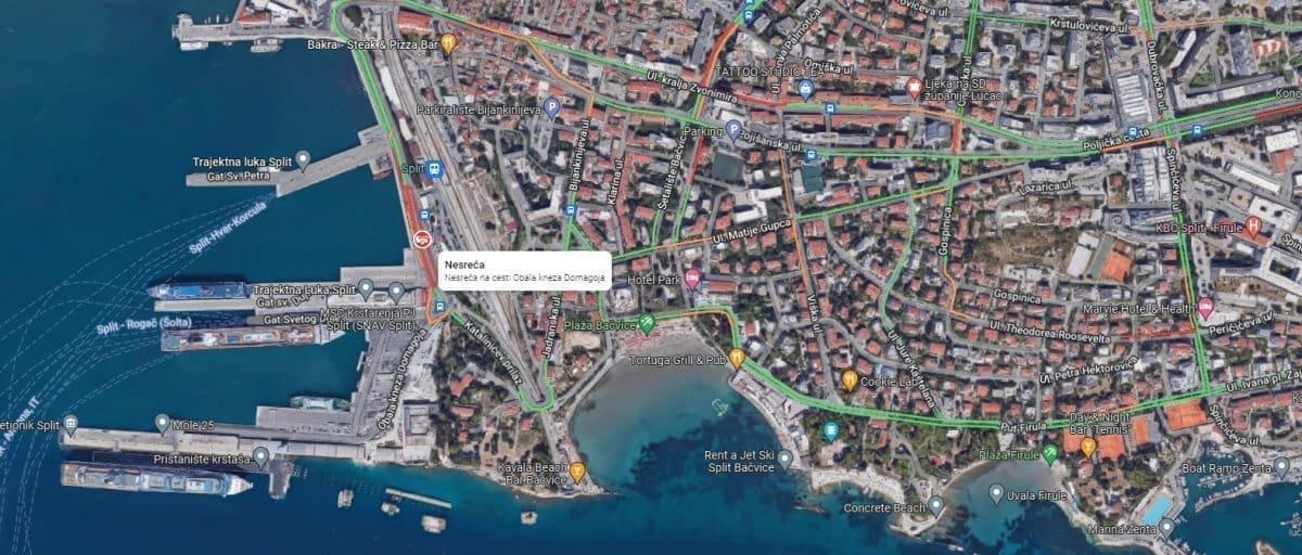 Danas u 17 sati i 12 minuta policiji je dojavljena prometna nesreća u splitskoj trajektnoj luci.