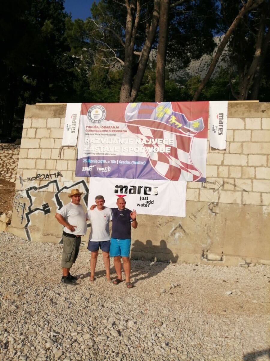 U ranim popodnevnim satima 20 članova Ekološko-roniteljskog kluba Timun uz još 15-ak ljudi iz logistike na plaži u Gradcu krenulo je u ovaj pothvat, te su u konačnici na morsko dno postavili zastavu veličine 22 x 10 metara. Tim su i službeno uspjeli oboriti Guinnessov rekord. Dosadašnji rekord držali su Novozelanđani koji su na morsko dno postavili zastavu površine 160 kvadratnih metara, a danas je površina iznosila 220 kvadrata.