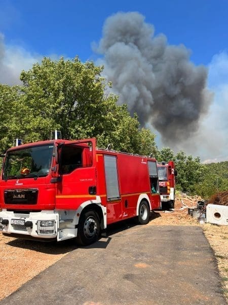 U tijeku je gašenje požara otvorenog prostora na području Poljica kod Imotskog za koji je dojava stigla u 14:45.