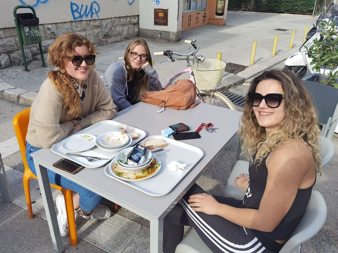Lijepo vrijeme u studenom ne stvara probleme ukoliko se jede na otvorenom, ali Studentski centar u Splitu planira uložiti dodatna sredstva u opremanje štekata kako bi studentima konzumacija hrane u budućnosti bila što ugodnija. Restoran Indeks na ovaj je način postao prvo mjesto u Splitu u kojem studenti hranu konzumiraju na svježem zraku pa bi bila šteta ne urediti ga do kraja. A da studentima odgovara obrok na svježem zraku, uvjerili smo se iz prve ruke. Vrijeme je ručka, a štekat je pun. Za kratak razgovor su bile raspoložene tri studentice koje su netom završile s obrokom. - Super mi je jesti na svježem zraku dok me obasjavaju sunčane zrake. Puno bolje nego unutra - govori nam Eva Šore iz splitskog Varoša, studentica Pravnog fakulteta. Iako je mjesec studeni, odjeća je ljetna, a sunčane naočale su na glavi. Eto to su vam blagodati studiranja u Splitu. - Ajme osjećam se kao da sam na kavi, a zapravo sam u menzi i odlično jedem za pet kuna - dobacuje Leonora Gal iz Vodica, također studentica Pravnog fakulteta. - Ljepše mi je jesti kad znam da je manja mogućnost zaraze. Odmah sam opuštenija - zaključuje Flora Novak s otoka Hvara, studentica Umjetničke akademije koja je svoj bicikl parkirala tik do štekata.