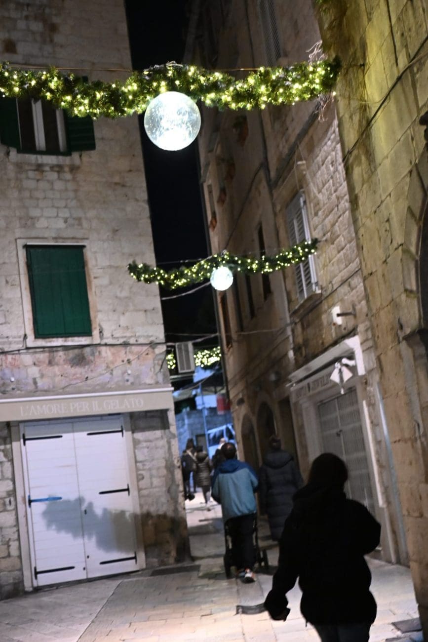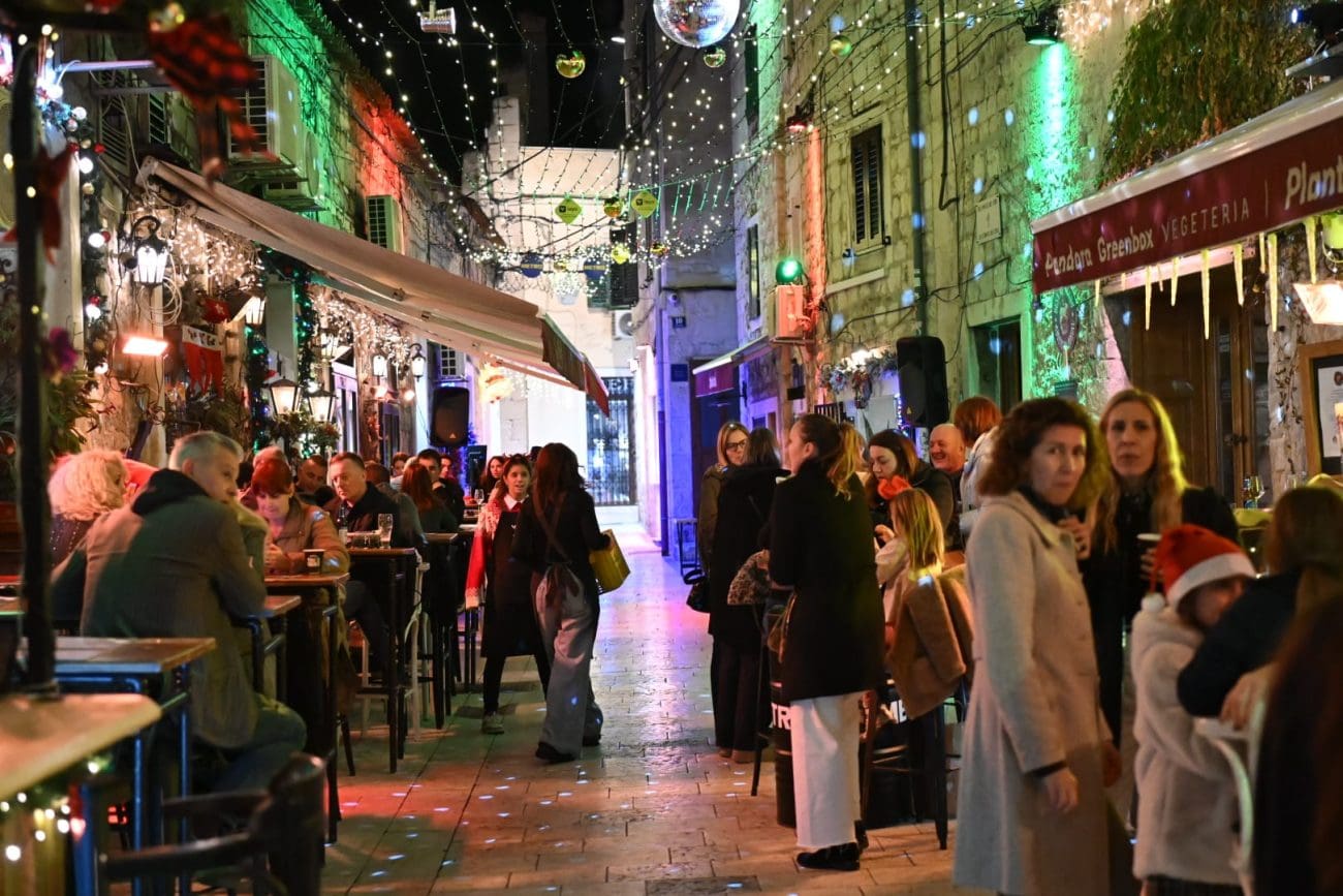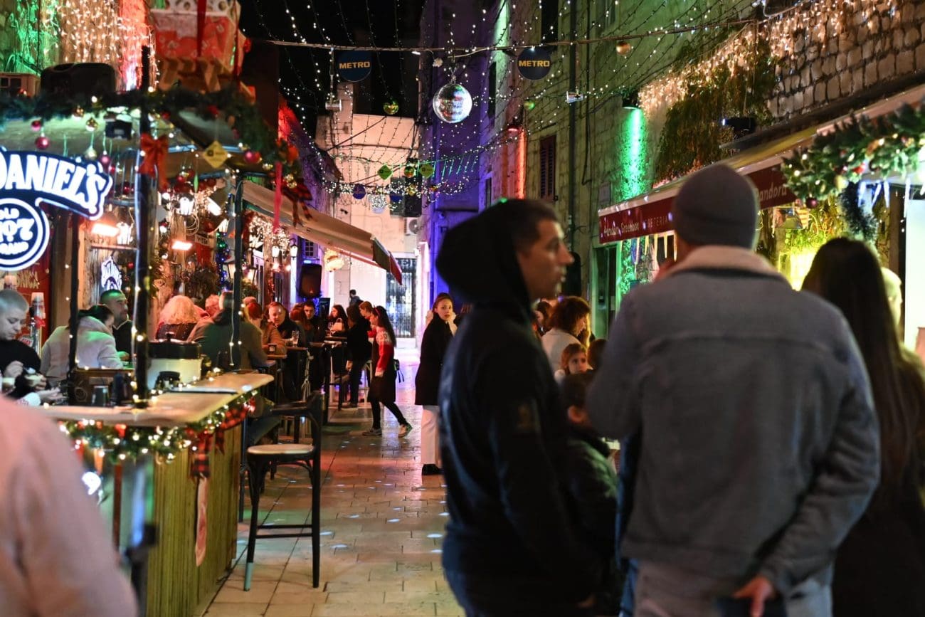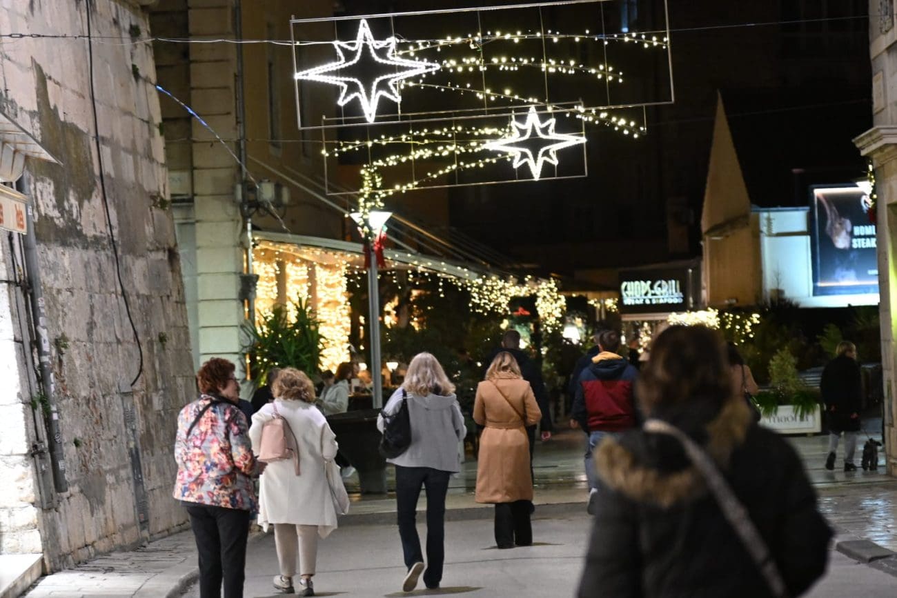 Pjaca je, kao i uvijek, izgledala bajkovito. Osvjetljeni pročelja, veliki broj šetača i blagdanski detalji koji ističu ljepotu povijesne jezgre dali su joj poseban šarm. Terase su bile pune, a kroz mnoštvo ljudi provlačila se ona prepoznatljiva energija koja Split čini živim u svako doba godine, ali u adventu posebno.