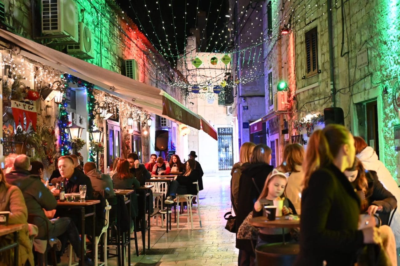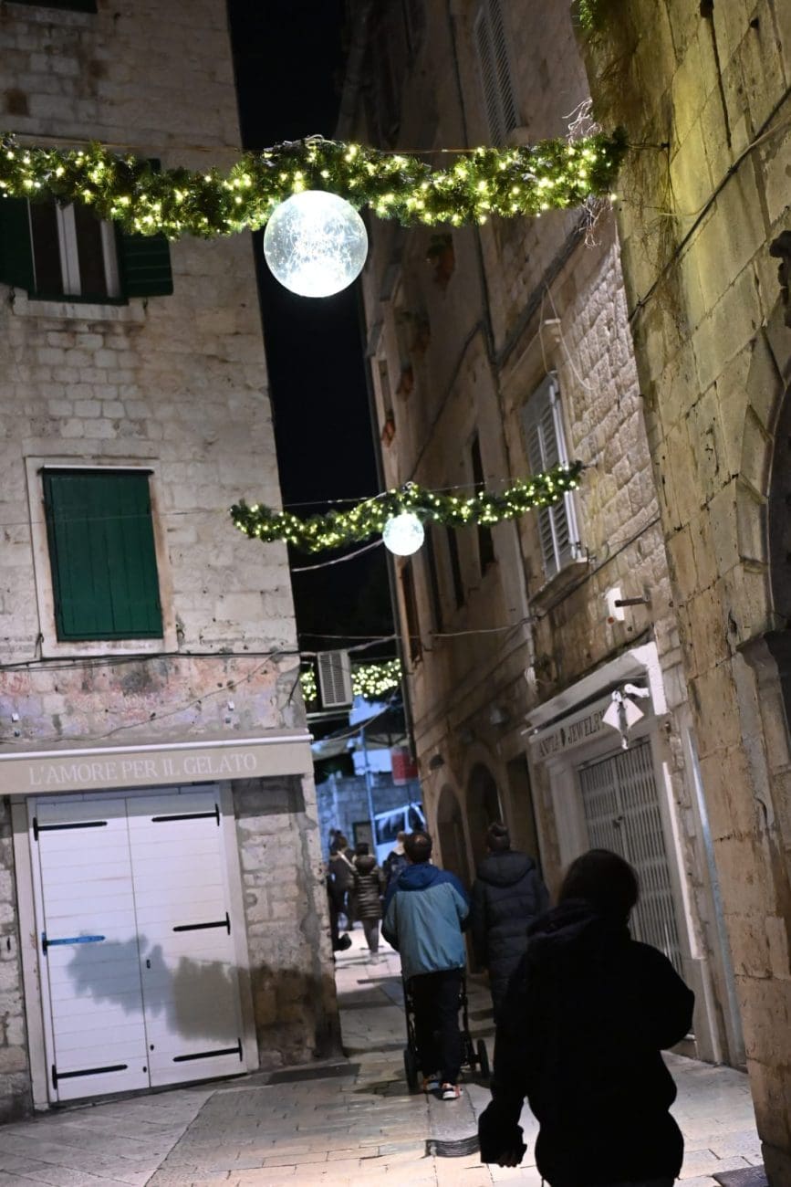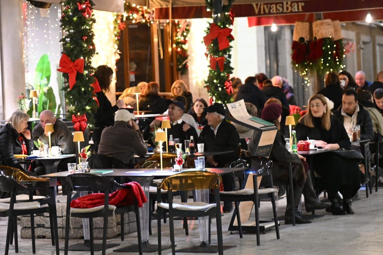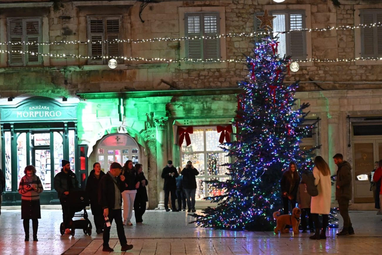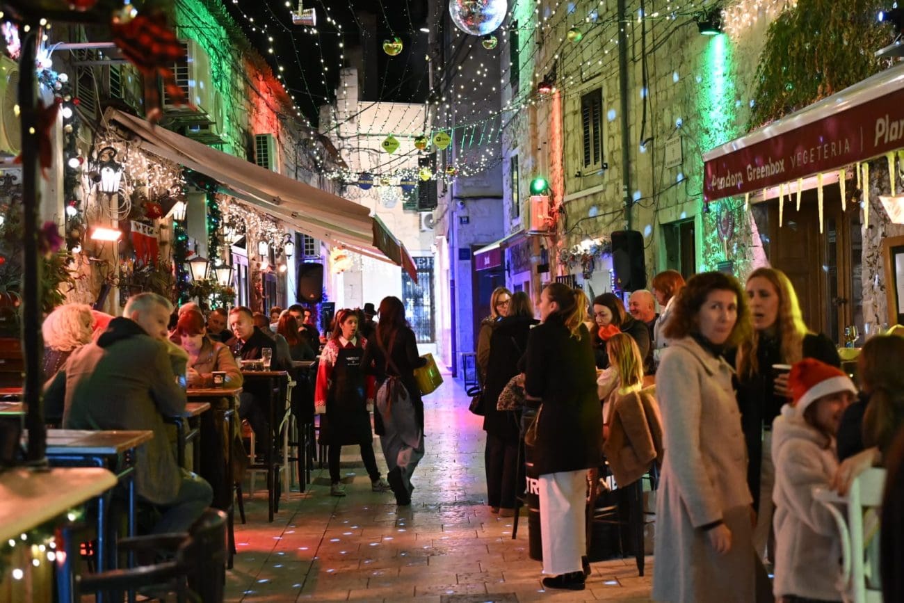 Pjaca je, kao i uvijek, izgledala bajkovito. Osvjetljeni pročelja, veliki broj šetača i blagdanski detalji koji ističu ljepotu povijesne jezgre dali su joj poseban šarm. Terase su bile pune, a kroz mnoštvo ljudi provlačila se ona prepoznatljiva energija koja Split čini živim u svako doba godine, ali u adventu posebno.