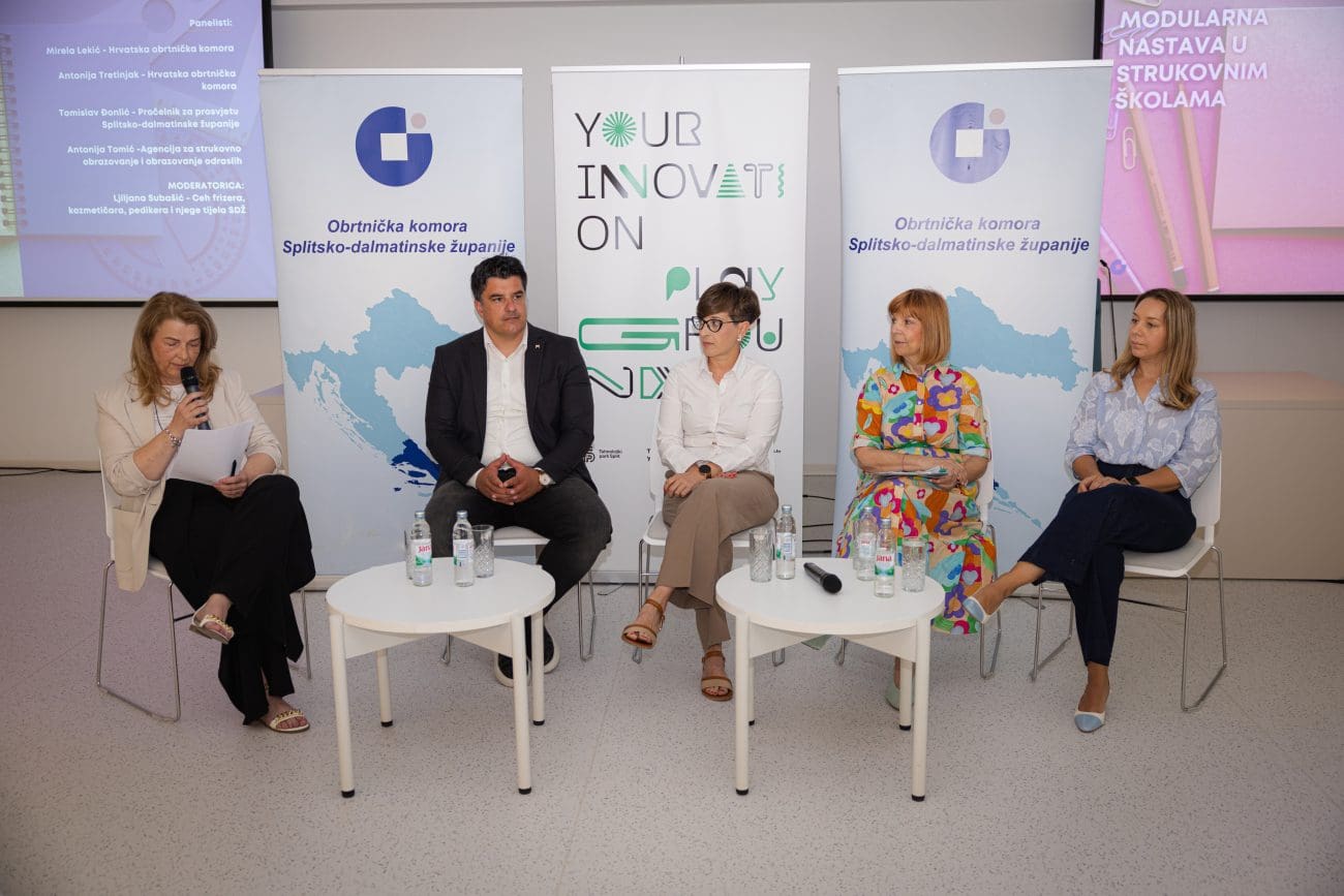 Sudionici su razgovarali o praktičnoj primjeni modularnih kurikuluma, važnosti učenja temeljenog na radu te o ulozi poslodavaca u procesu obrazovanja budućih stručnjaka. U panel-raspravi sudjelovali su Mirela Lekić i Antonija Tretinjak iz Hrvatske obrtničke komore, Tomislav Đonlić iz Splitsko-dalmatinske županije te Antonija Tomić iz Agencije za strukovno obrazovanje i obrazovanje odraslih.