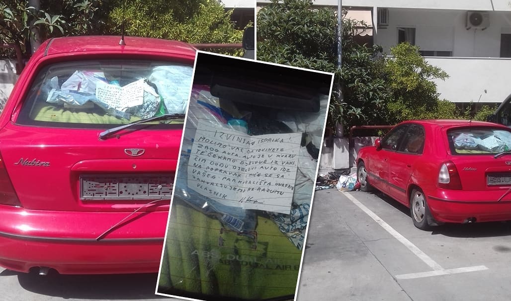 Dok stanari Ulice Poljička 1 i 1A već nekoliko mjeseci čekaju da se s parkirališta ukloni neregistrirani automobil, danas ih je dočekala neuobičajena poruka na 'odbačenom' i starom automobilu.