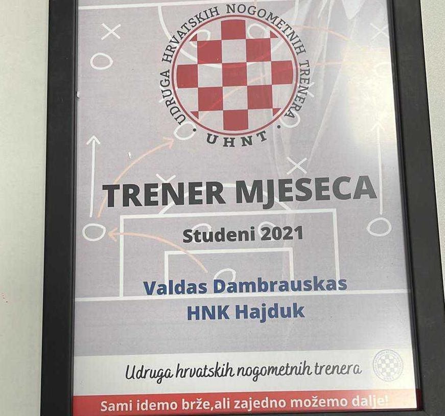 Godinama se ne pamti da je atmosfera u Hajduku bila tako dobra, a to se reflektiralo i među navijače. Tome je itekako doprinio Hajdukov trener Valdas Dambrauskas koji je dobio službeno priznanje Udruge hrvatskih nogometnih trenera. Naime, struka ga je izabrala za najboljeg trenera u studenom.
