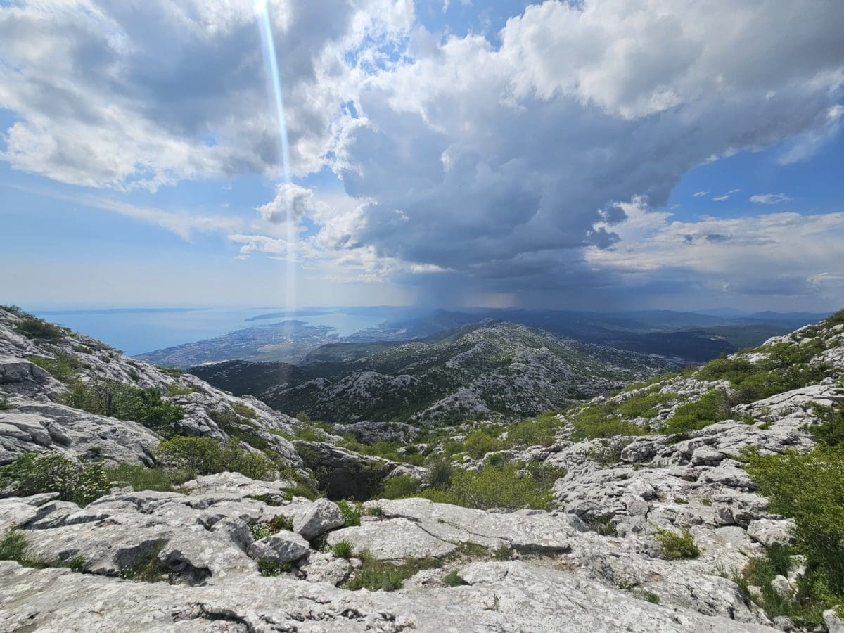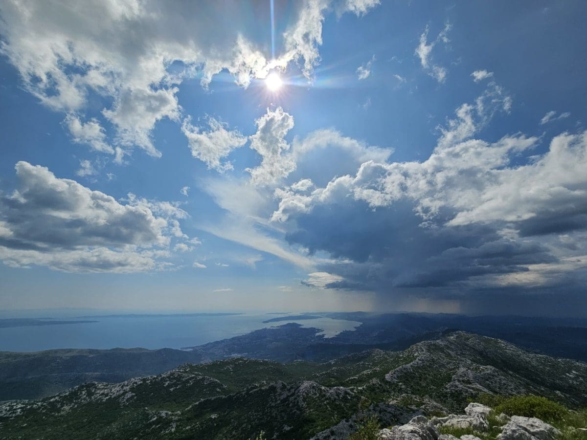 Za tri i pol sata stižemo do Ljubljana. Iako je prijetila nevera, a nju ne bi bilo zgodno doživjeti na vrhu, munje i pljuskovi otišli su prema trogirskom zaleđu. Nakon osvajanja vrha spuštamo se do planinarskog skloništa "Ljubljan" na 1080 metara nadmorske visine. Ovo sklonište itekako dobro može doći u slučaju nevremena, a su dnevni boravaka, kuhinja i spavaća soba s nekoliko kreveta. Zdanje ima i kamin, ali i osiguranu pitku vodu preko kišnice. Na putu smo susreli i nekoliko neotrovnih zmija, poskoci su nam srećom izbjegavali.