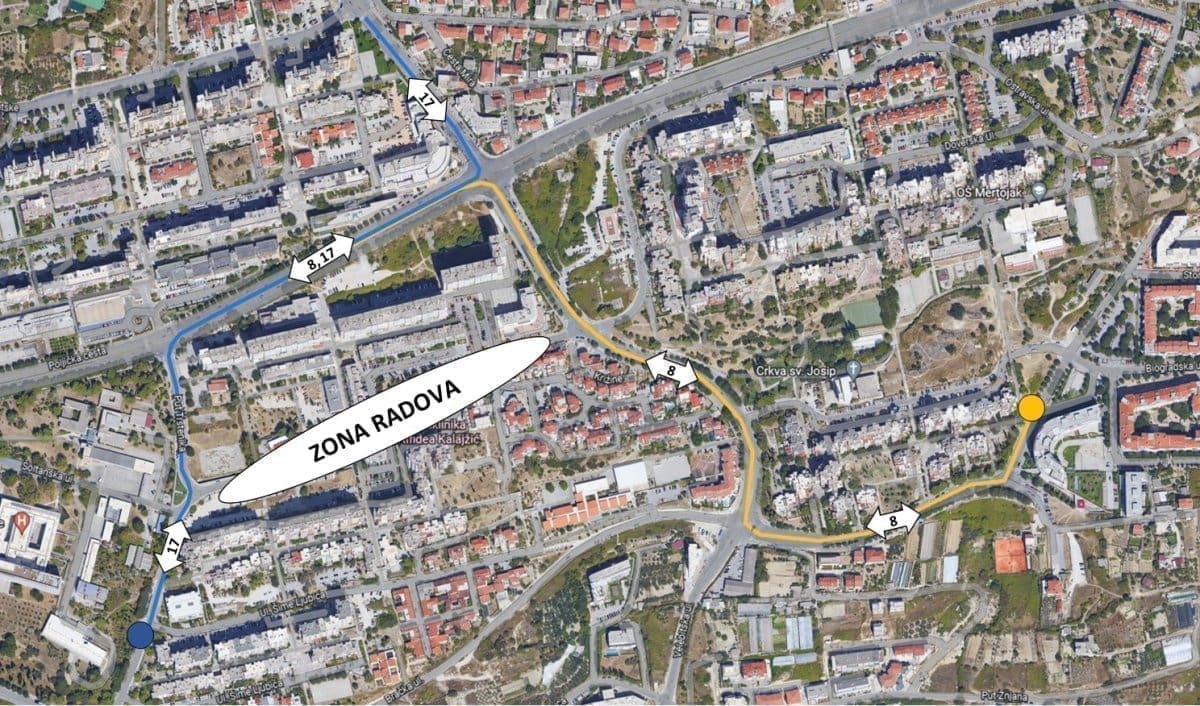 - Autobusna linija broj 17 s početne stanice na Trsteniku prometuje iz Ulice Put Radoševca preko Ulice Put Trstenika, a potom skreće desno u Poljičku ulicu te lijevo u Velebitsku ulicu i dalje nastavlja svojom uobičajenom trasom do Spinuta. Iz smjera Spinuta autobusna linija prometovat će na način da nakon uobičajene trase iz Velebitske ulice skreće desno u Poljičku ulicu te lijevo u Ulicu Put Trstenika do početno - završnog stajališta na Trsteniku u Ulici Put Radoševca.
