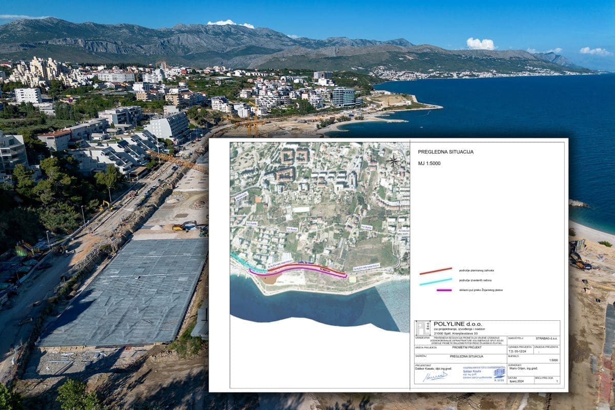 Stoga, u četvrtak, 13. lipnja na snagu stupa privremena regulacija prometa na lokaciji Žnjanski plato na način da se za promet vozila koristi obilazni put širine 6 metara preko Žnjanskog platoa od kolnog spoja plaže za osobe s invaliditetom (kod Hotela Amphora) do objekta gradilišnih ureda Strabag. Ujedno, tijekom izvođenja radova ukidaju se postojeće autobusne stanice (linija br. 15) neposredno istočno od Hotela Amphora. Nova lokacija autobusne stanice je na mjestu spajanja platoa sa Šetalištem pape Ivana Pavla II. Okretište autobusa ostaje nepromijenjivo. Planirano trajanje radova je do 15. studenog 2024. godine.