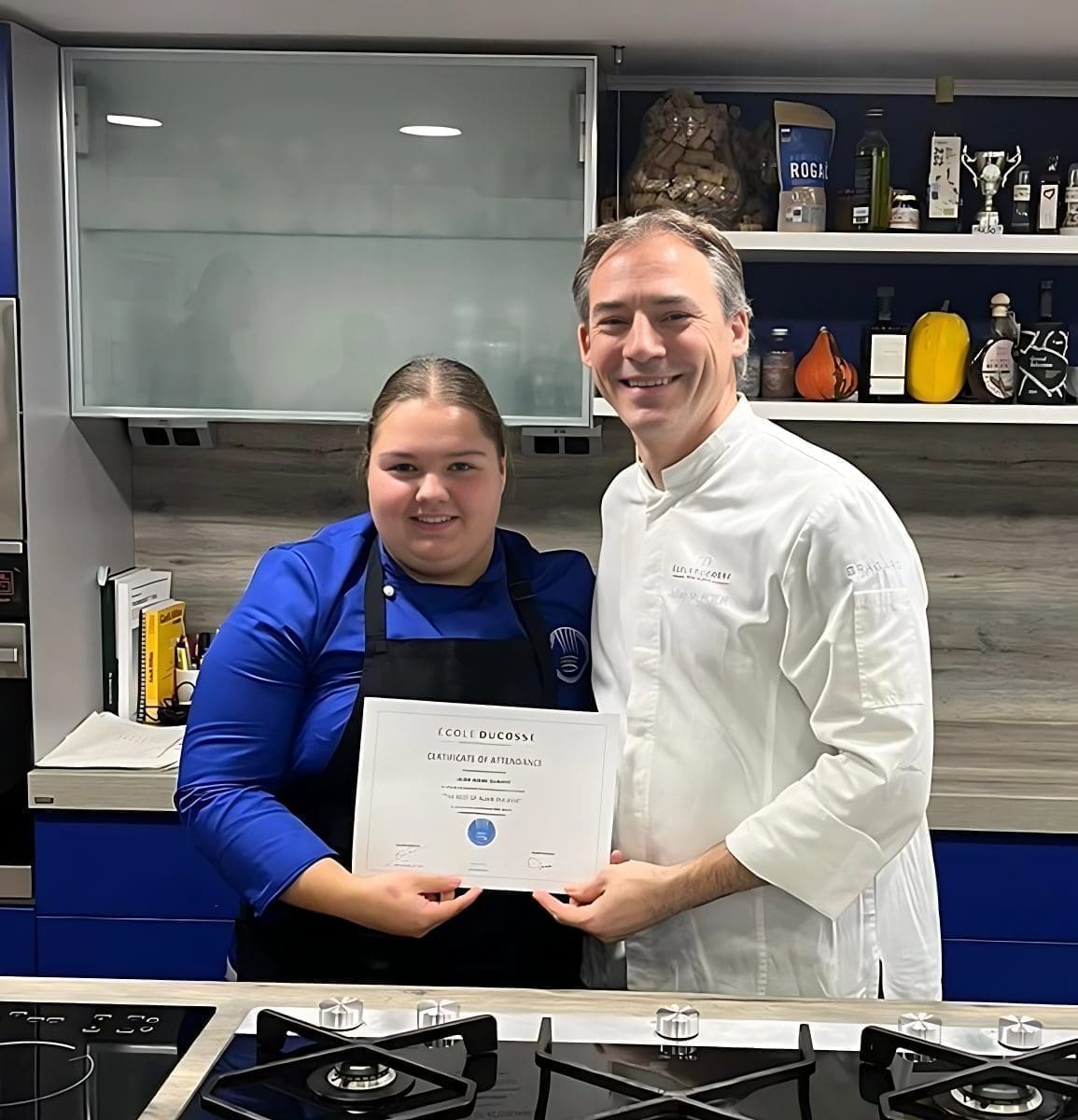 Nadarenost, marljivost i posvećenost budućem pozivu, dovelo je mladu Osječanku Lauru Hodak Dujković na kulinarske majstorske radionice École Ducasse, francuske škole visoke gastronomije chefa Alain Ducassea u splitskoj ŠKMER Akademiji. Sudjelovanje na zahtjevnoj hands on edukaciji, jedinom gostovanju u regiji ove škole tog velikog francuskog chefa s preko 20 Michelinovih zvjezdica, omogućila joj je stipendija koju se joj priskrbile devet humanitarki iz povjerenstva “New voices”, 26. Distrikta Lions kluba, predvođene Splićankom Tatjanom Vukman.