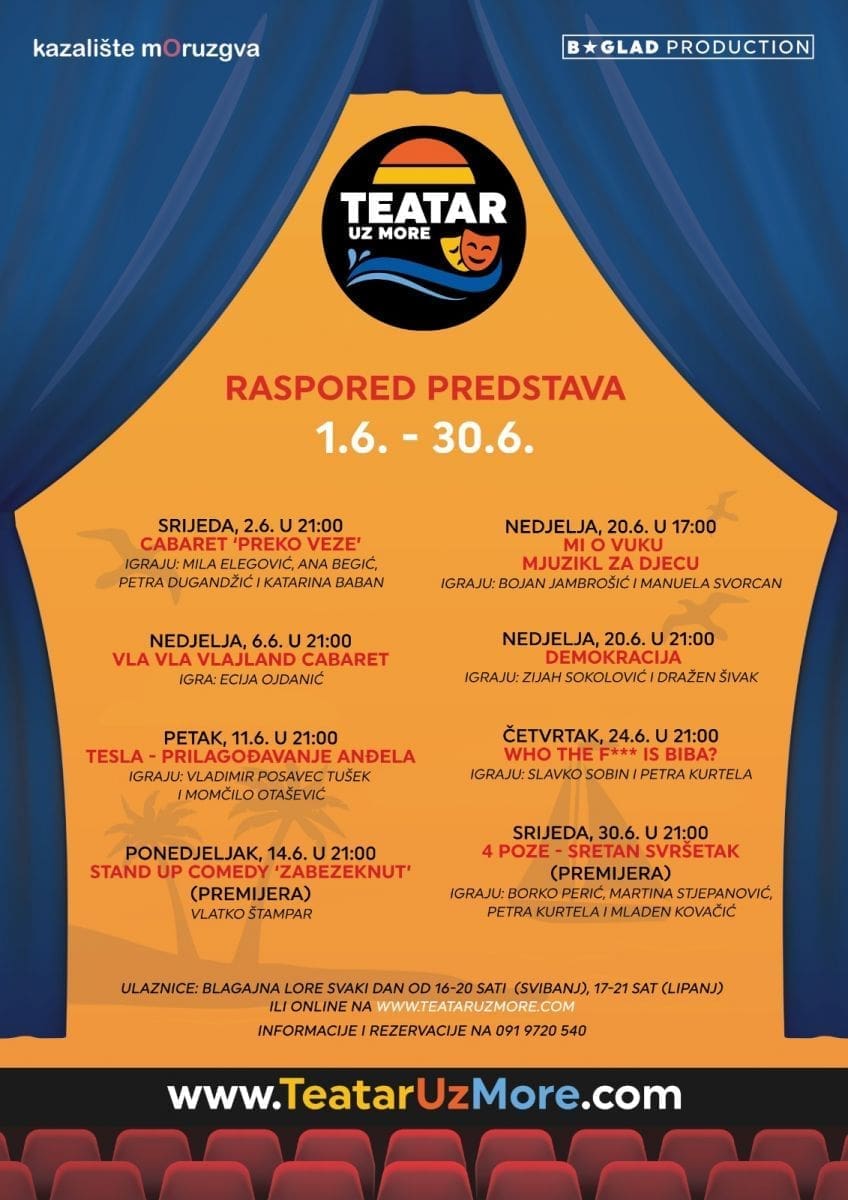 Program za lipanj baziran je na kvalitetnim komedijama. Uz dvije premijerne predstave ostali, vrlo popularni, kazališni naslovi birani su upravo od publike. Poštujući i osluškujući upravo riječ publike dovodimo hit do hita pod zvjezdanim nebom Splita - rekla je Tadija Kolovrat, B GLAD Produkcija.